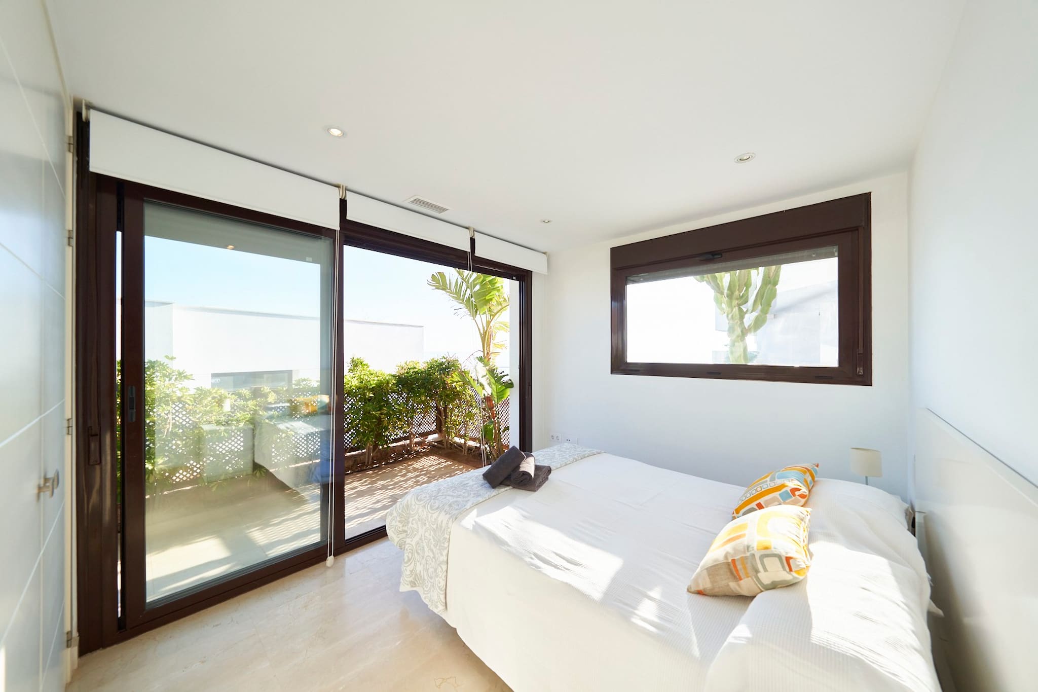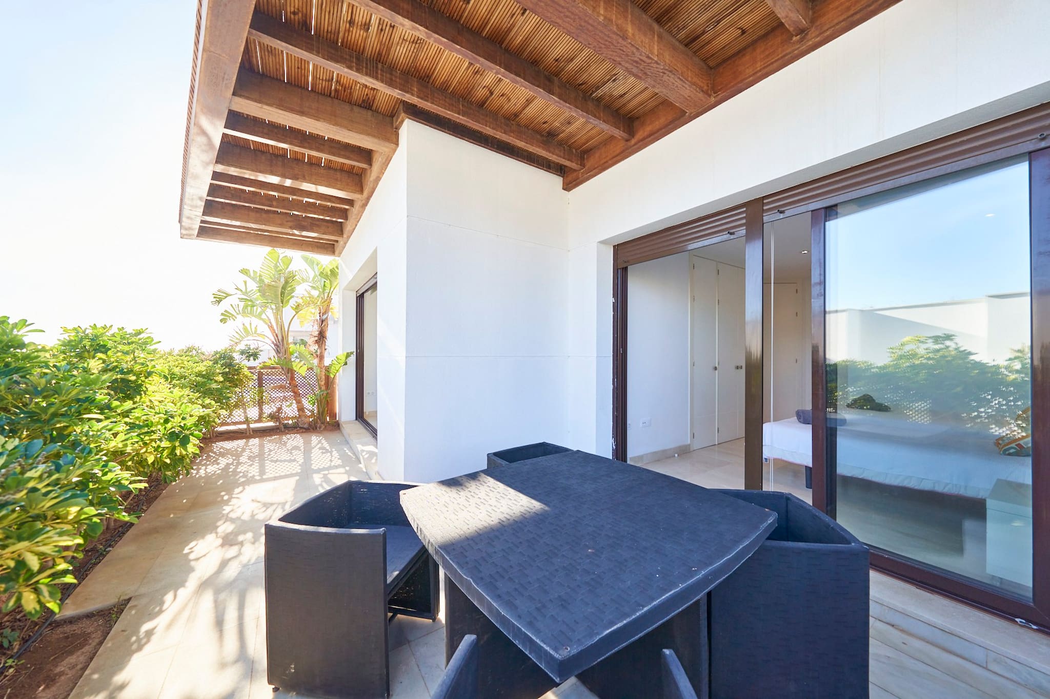 Appartement à San Jose qui possède 2 chambre(s) et Capacité pour 4 personnes. Logement de 120 m². Elle dispose de jardin, mobilier de jardin, clôture, 30 m² de terrasse, lave-linge, fer à repasser, accès internet (wifi), sèche-cheveux, climatisation dans tout le logement, piscine collective, parking extérieur même bâtiment, 1 Télévision. La cuisine indépendante, à vitrocéramique, est équipée avec réfrigérateur, micro-ondes, congélateur, lave-vaisselle, vaisselle/couverts, ustensiles/cuisine, cafetière, grille pain, bouilloire et presse-agrumes.