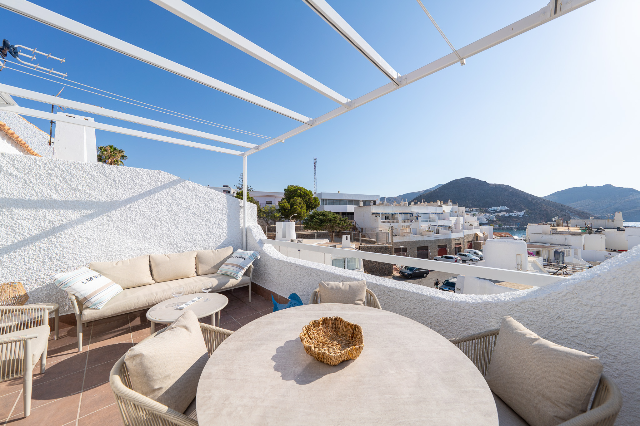 Maison mitoyenne à San Jose qui possède 3 chambre(s) et Capacité pour 6 personnes. Logement de 80 m². Elle dispose de mobilier de jardin, 6 m² de terrasse, lave-linge, fer à repasser, accès internet (wifi), sèche-cheveux, chauffage pompe à chaleur, climatisation, 1 Télévision. La cuisine américaine, à vitrocéramique, est équipée avec réfrigérateur, micro-ondes, congélateur, vaisselle/couverts, ustensiles/cuisine, cafetière, grille pain, bouilloire et presse-agrumes.