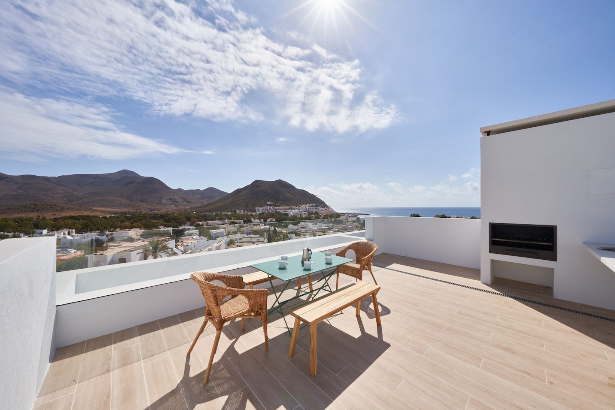 Maison mitoyenne à San Jose qui possède 3 chambre(s) et Capacité pour 6 personnes. Logement de 100 m². Elle dispose de jardin, mobilier de jardin, clôture, terrasse, lave-linge, barbecue, cheminée, fer à repasser, accès internet (wifi), sèche-cheveux, chauffage pompe à chaleur, climatisation dans tout le logement, piscine collective, garage même bâtiment, 1 Télévision.La cuisine américaine, à vitrocéramique, est équipée avec réfrigérateur, micro-ondes, four, congélateur, lave-vaisselle, vaisselle/couverts, ustensiles/cuisine, cafetière, grille pain, bouilloire et presse-agrumes.