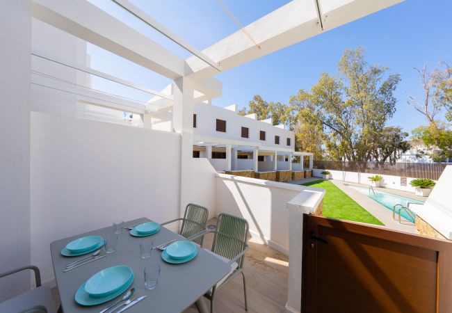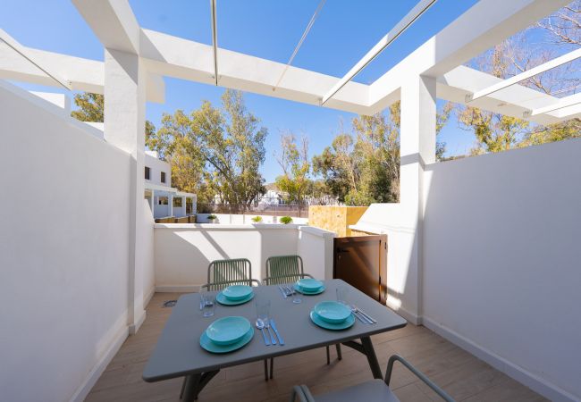 Maison mitoyenne à San Jose qui possède 2 chambre(s) et Capacité pour 4 personnes. Logement de 90 m². Elle dispose de jardin, mobilier de jardin, 40 m² de terrasse, lave-linge, fer à repasser, accès internet (wifi), sèche-cheveux, chauffage pompe à chaleur, climatisation, piscine collective, garage même bâtiment, 1 Télévision. La cuisine américaine, à vitrocéramique, est équipée avec réfrigérateur, micro-ondes, four, congélateur, lave-vaisselle, vaisselle/couverts, ustensiles/cuisine, cafetière, grille pain, bouilloire et presse-agrumes.