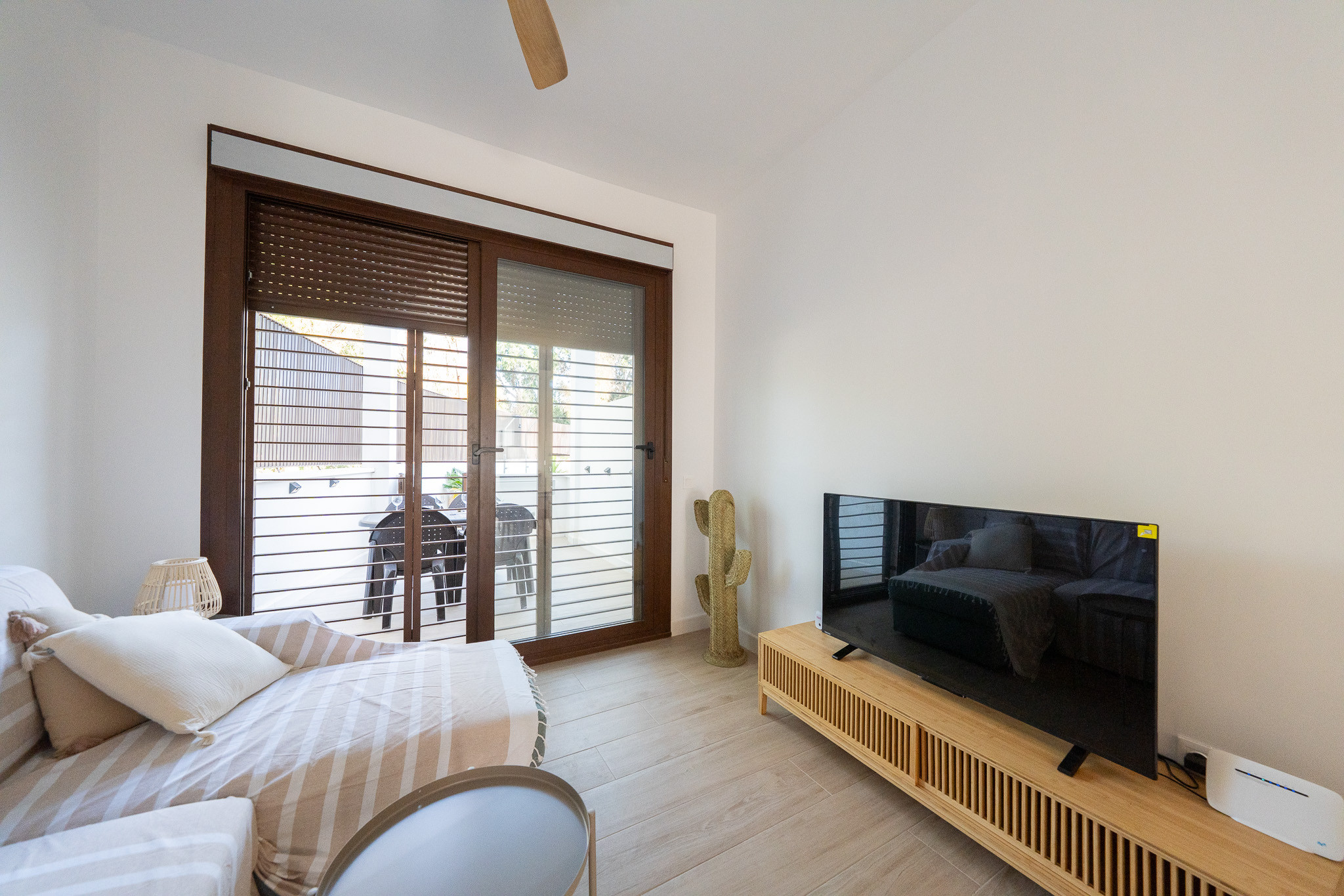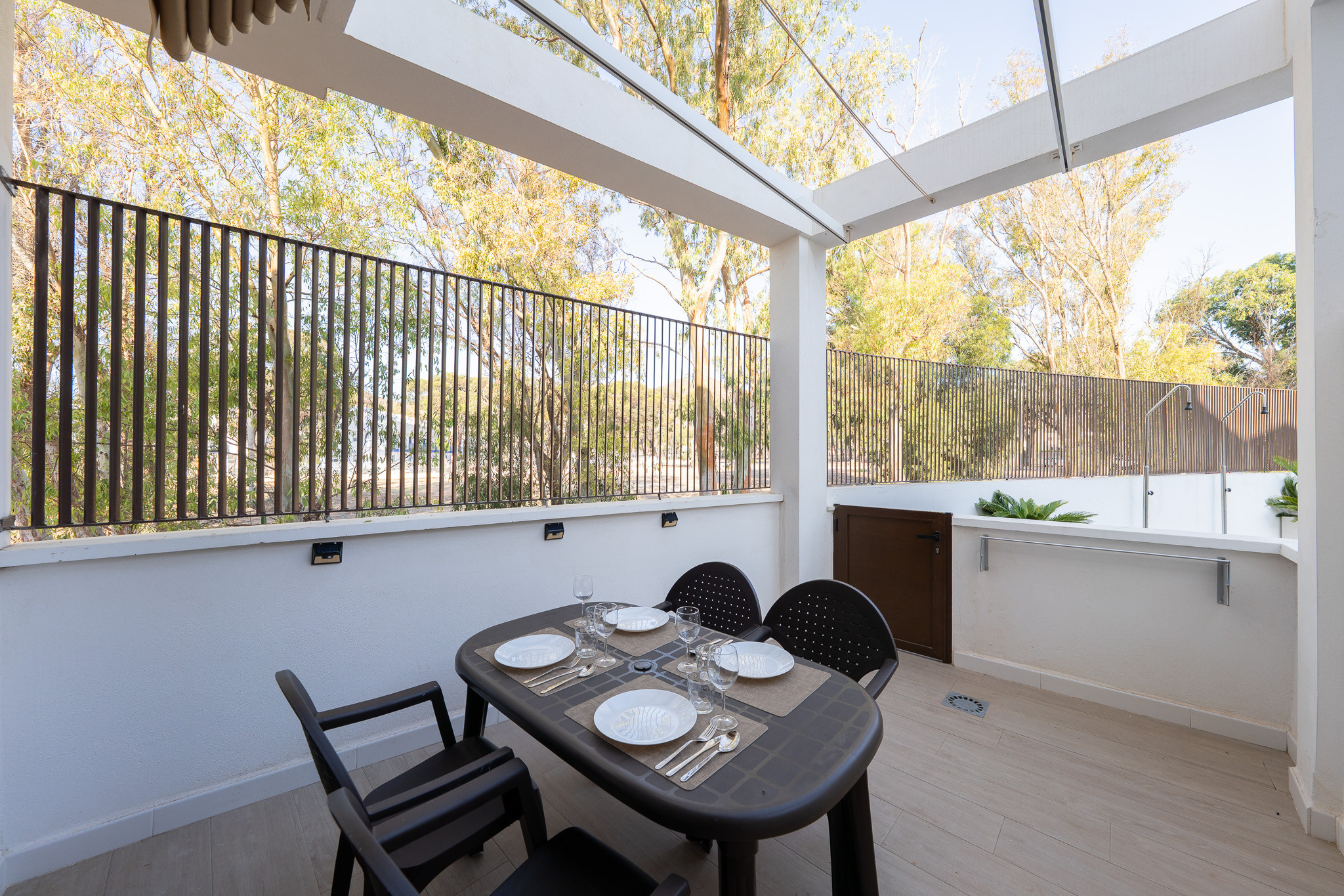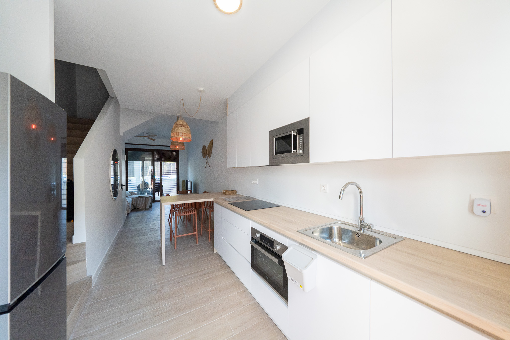 Maison à San Jose qui possède 2 chambre(s) et Capacité pour 6 personnes. Logement de 105 m². Elle dispose de 12 m² de terrasse, lave-linge, fer à repasser, accès internet (wifi), sèche-cheveux, chauffage pompe à chaleur, climatisation, piscine collective, moustiquaires dans tout le logement, 1 Télévision. La cuisine américaine, à vitrocéramique, est équipée avec réfrigérateur, micro-ondes, four, congélateur, vaisselle/couverts, ustensiles/cuisine, cafetière, grille pain, bouilloire et presse-agrumes.