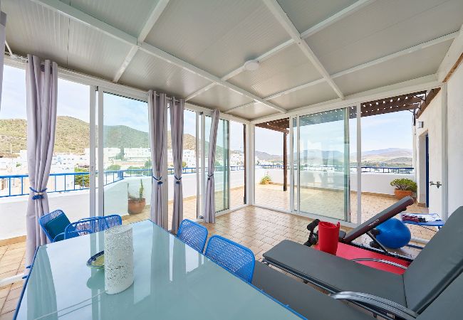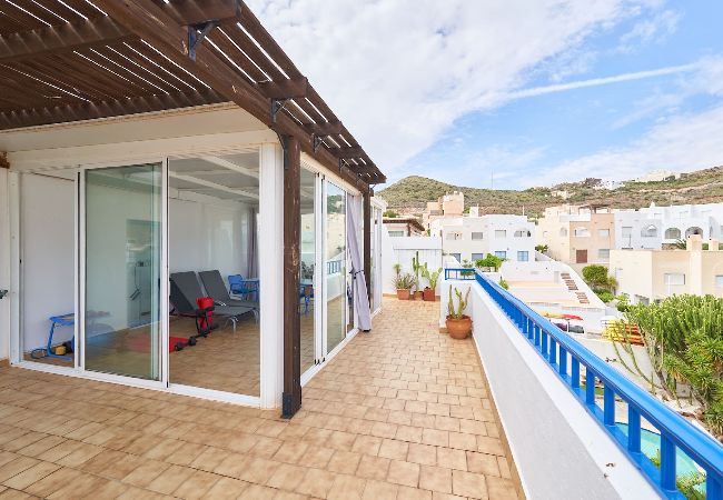 The apartment in Níjar has 1 bedrooms and has capacity for 4 people. The apartment is 40 m². The accommodation is equipped with the following items: terrace, washing machine, iron, internet (Wi-Fi), hair dryer, balcony, heat pump, air conditioning throughout the house, communal swimming pool, 1 TV. In the hotplate of glass ceramics open plan kitchen, refrigerator, microwave, dishwasher, dishes/cutlery, kitchen utensils, coffee machine, toaster and hob are provided.