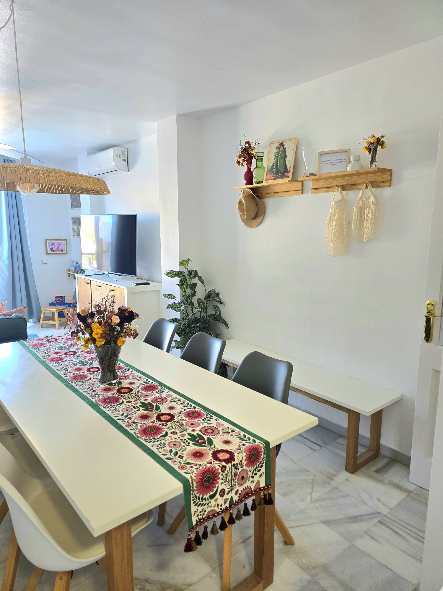 The apartment in San Jose has 3 bedrooms and has capacity for 6 people. The apartment is 80 m². The accommodation is equipped with the following items: 5 m² terrace, washing machine, iron, internet (Wi-Fi), hair dryer, heat pump, air-conditioned, communal swimming pool, 4 fans, 2 TVs.In the hotplate of glass ceramics open plan kitchen, refrigerator, oven, freezer, dishes/cutlery, kitchen utensils, coffee machine, toaster, kettle and juicer are provided.