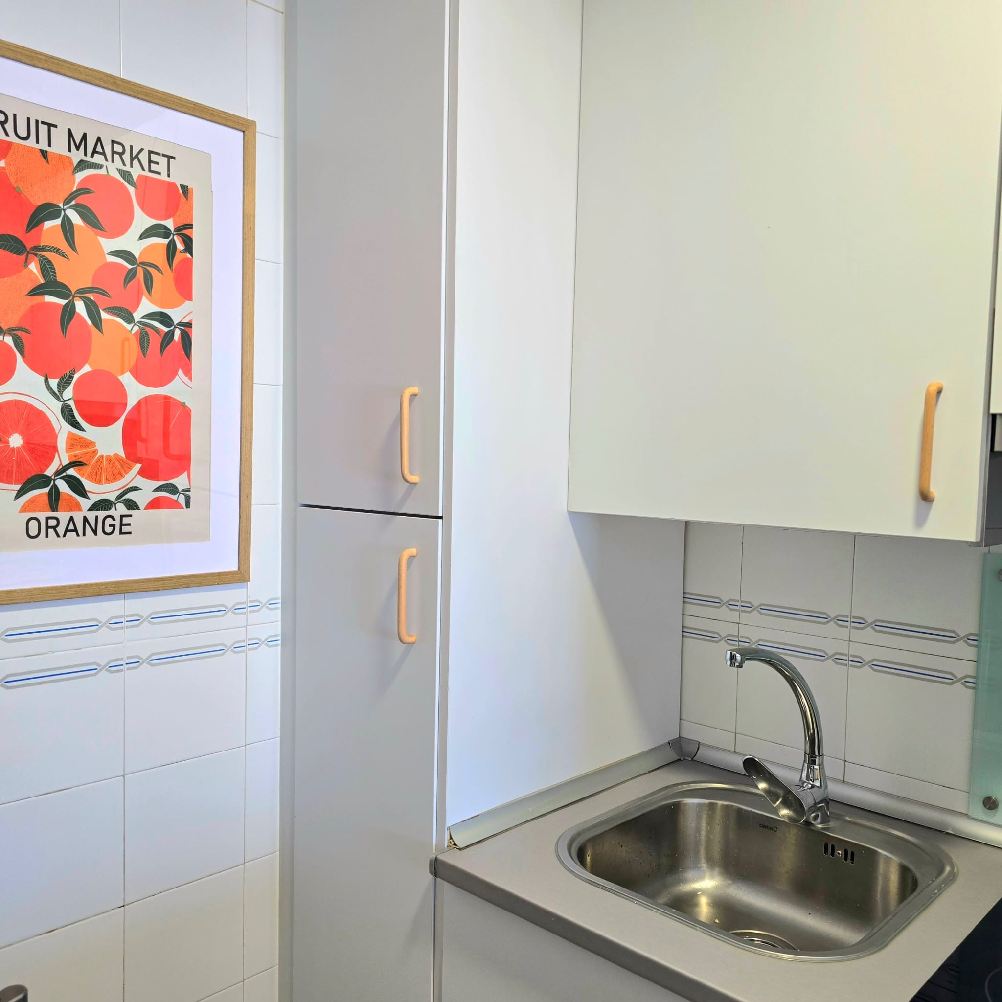 The apartment in San Jose has 3 bedrooms and has capacity for 6 people. The apartment is 80 m². The accommodation is equipped with the following items: 5 m² terrace, washing machine, iron, internet (Wi-Fi), hair dryer, heat pump, air-conditioned, communal swimming pool, 4 fans, 2 TVs. In the hotplate of glass ceramics open plan kitchen, refrigerator, oven, freezer, dishes/cutlery, kitchen utensils, coffee machine, toaster, kettle and juicer are provided.
