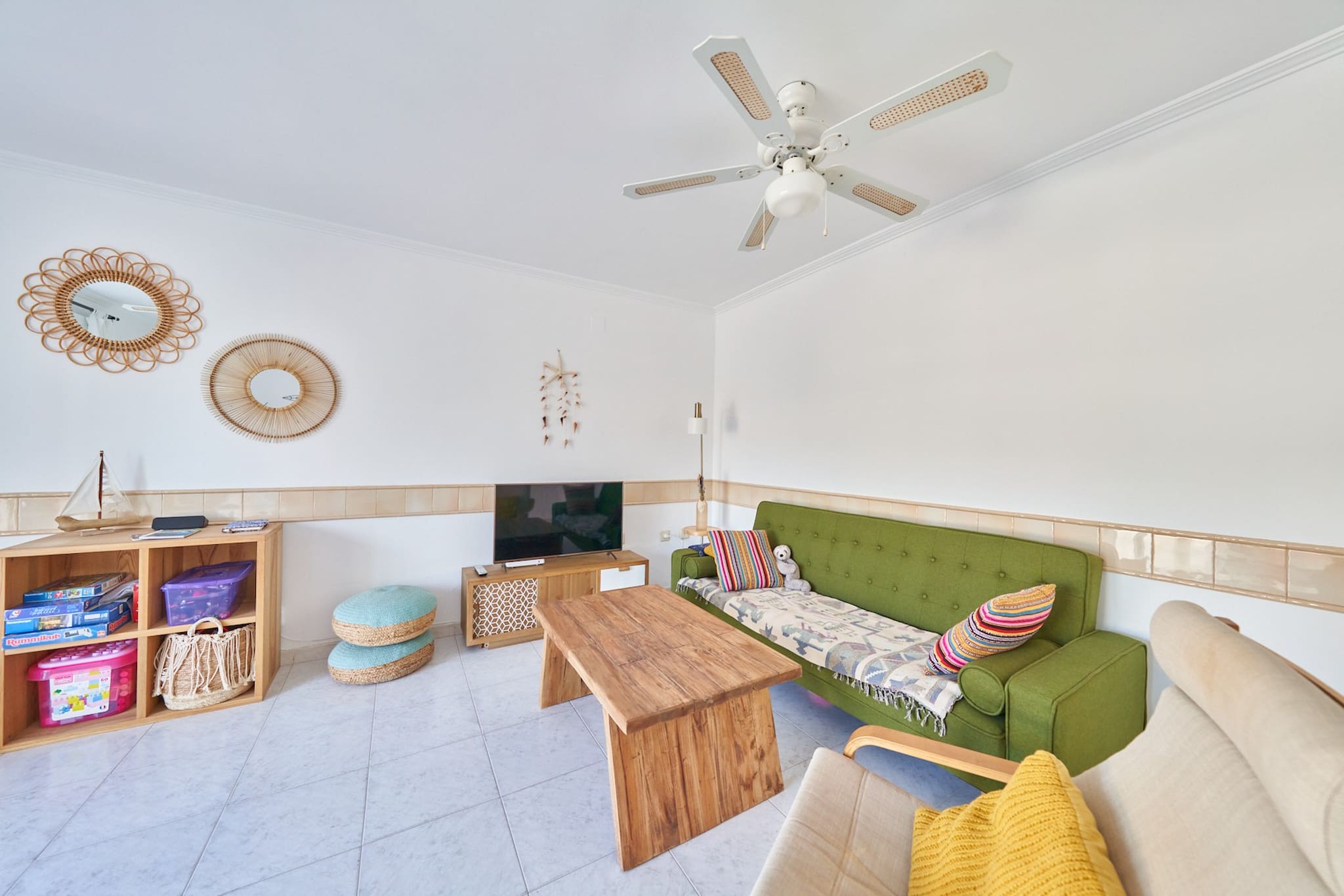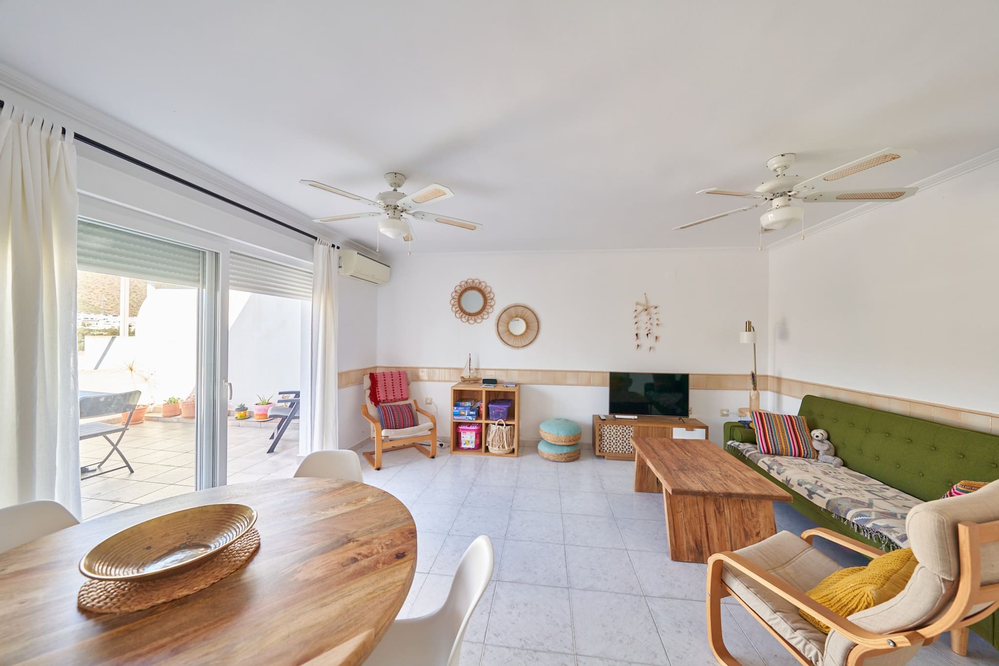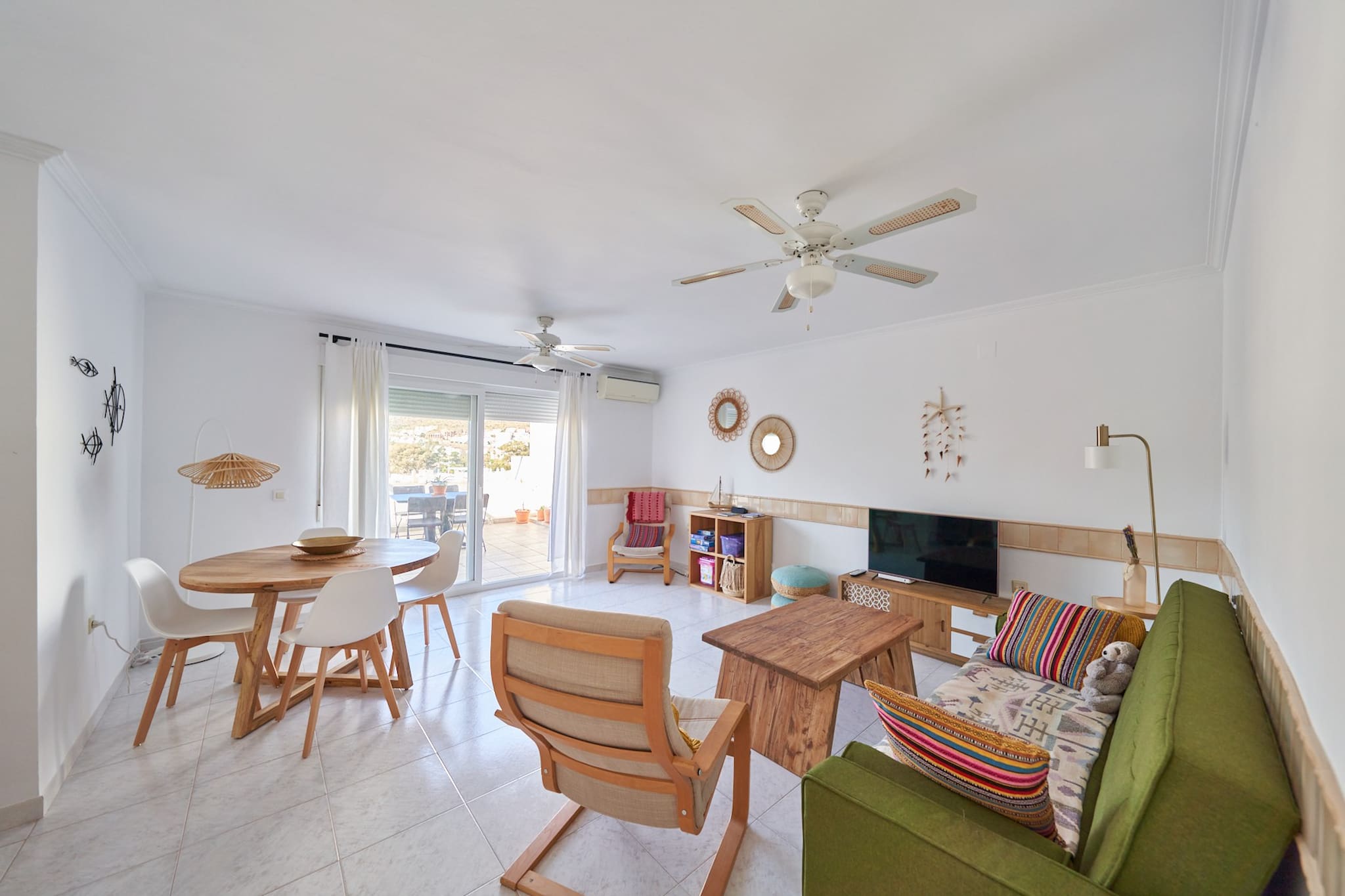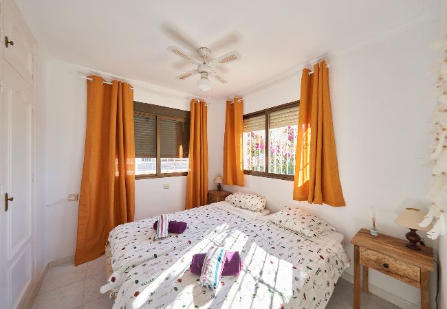 The apartment in San Jose has 2 bedrooms and has capacity for 4 people. The apartment is 80 m². The accommodation is equipped with the following items: garden furniture, washing machine, iron, internet (Wi-Fi), hair dryer, heat pump, air conditioning throughout the house, communal swimming pool, 2 fans, 1 TV.In the hotplate of glass ceramics independent kitchen, refrigerator, microwave, oven, freezer, dishwasher, dishes/cutlery, kitchen utensils, coffee machine, toaster and kettle are provided.