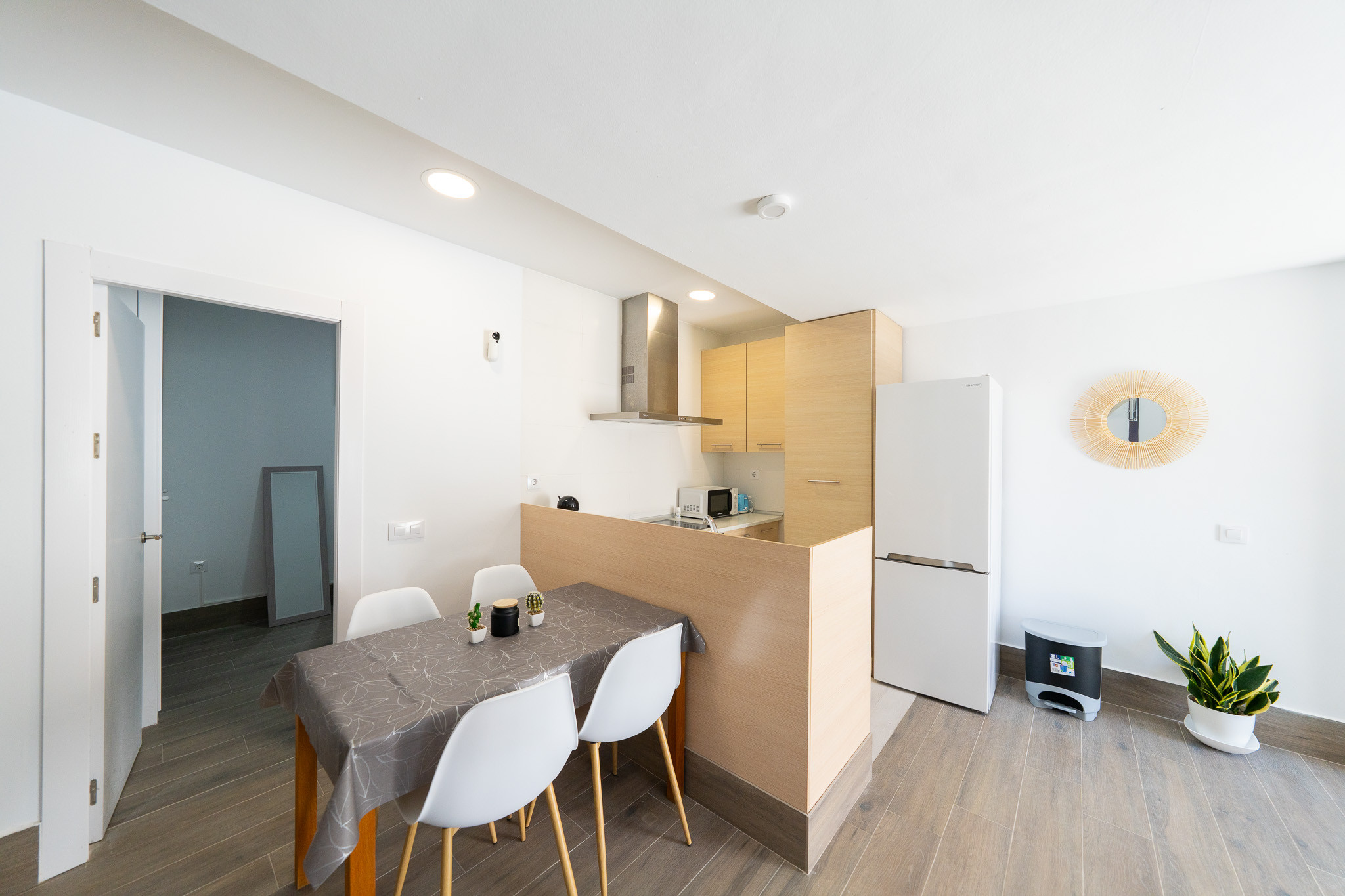 The apartment in San Jose has 2 bedrooms and has capacity for 4 people. The apartment is 50 m². The accommodation is equipped with the following items: garden, garden furniture, fenced garden, 40 m² terrace, washing machine, barbecue, iron, internet (Wi-Fi), hair dryer, heat pump, air-conditioned, 1 TV.In the hotplate of glass ceramics open plan kitchen, refrigerator, microwave, oven, freezer, dishes/cutlery, kitchen utensils, coffee machine, toaster and kettle are provided.
