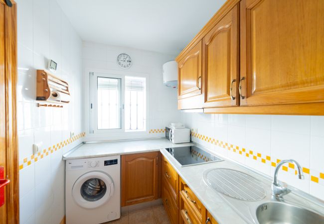 The apartment in San Jose has 2 bedrooms and has capacity for 4 people. The apartment is 50 m². The accommodation is equipped with the following items: garden furniture, 12 m² terrace, washing machine, iron, hair dryer, heat pump, air-conditioned, communal swimming pool, garage the same building, 1 TV.In the hotplate of glass ceramics independent kitchen, refrigerator, freezer, dishes/cutlery, kitchen utensils, coffee machine and toaster are provided.