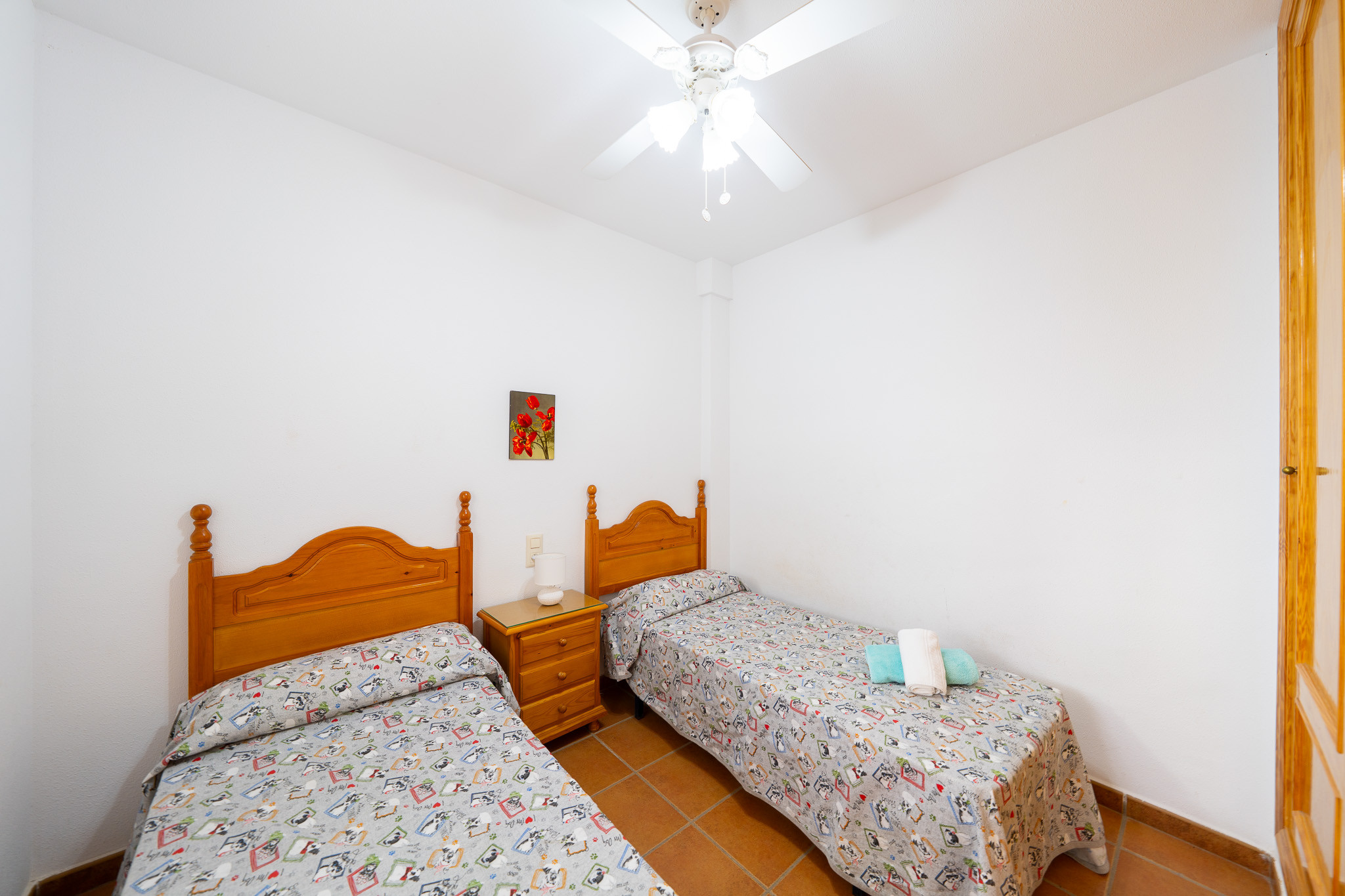 The apartment in San Jose has 2 bedrooms and has capacity for 5 people. The apartment is 45 m². The accommodation is equipped with the following items: 8 m² terrace, washing machine, hair dryer, balcony, garage the same building, 3 fans, 1 TV.In the hotplate of glass ceramics open plan kitchen, refrigerator, microwave, oven, freezer, dishes/cutlery, kitchen utensils, coffee machine, toaster, kettle and juicer are provided.