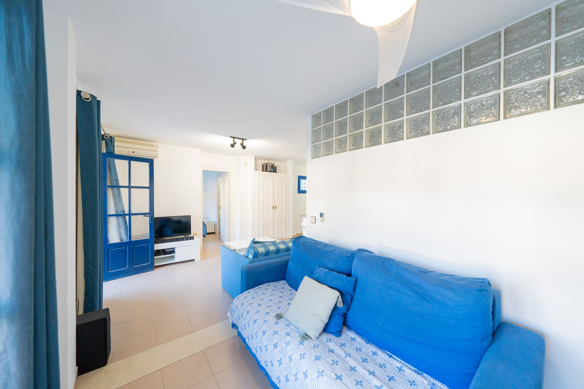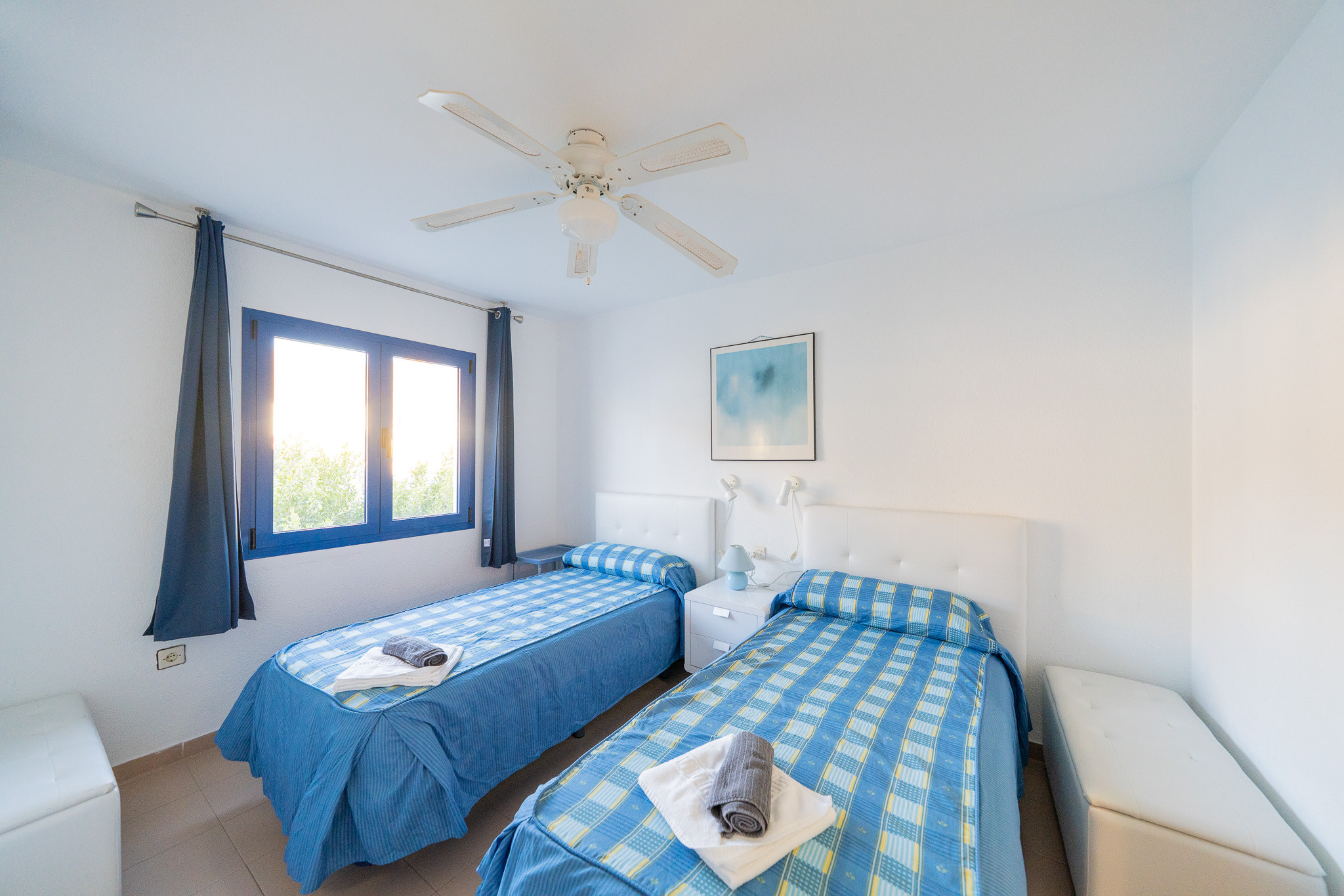 The apartment in San Jose has 2 bedrooms and has capacity for 6 people. The apartment is 45 m². The accommodation is equipped with the following items: garden furniture, 5 m² terrace, washing machine, barbecue, iron, internet (Wi-Fi), hair dryer, balcony, heat pump, air conditioning throughout the house, communal swimming pool, 2 TVs.In the induction open plan kitchen, refrigerator, microwave, oven, freezer, dishes/cutlery, kitchen utensils, coffee machine, toaster, kettle and juicer are provided.