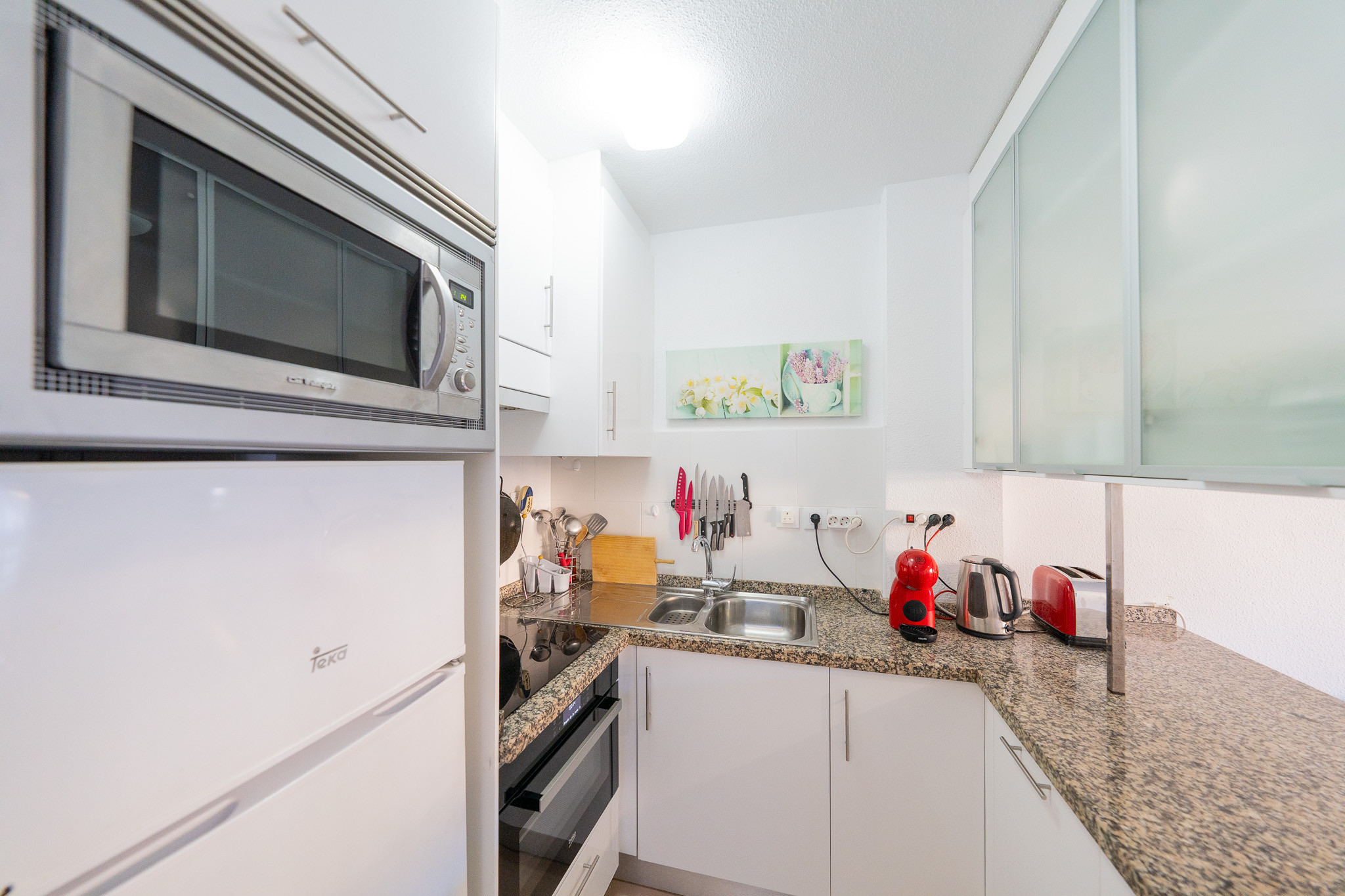 The apartment in San Jose has 2 bedrooms and has capacity for 6 people. The apartment is 45 m². The accommodation is equipped with the following items: garden furniture, 5 m² terrace, washing machine, barbecue, iron, internet (Wi-Fi), hair dryer, balcony, heat pump, air conditioning throughout the house, communal swimming pool, 2 TVs. In the induction open plan kitchen, refrigerator, microwave, oven, freezer, dishes/cutlery, kitchen utensils, coffee machine, toaster, kettle and juicer are provided.