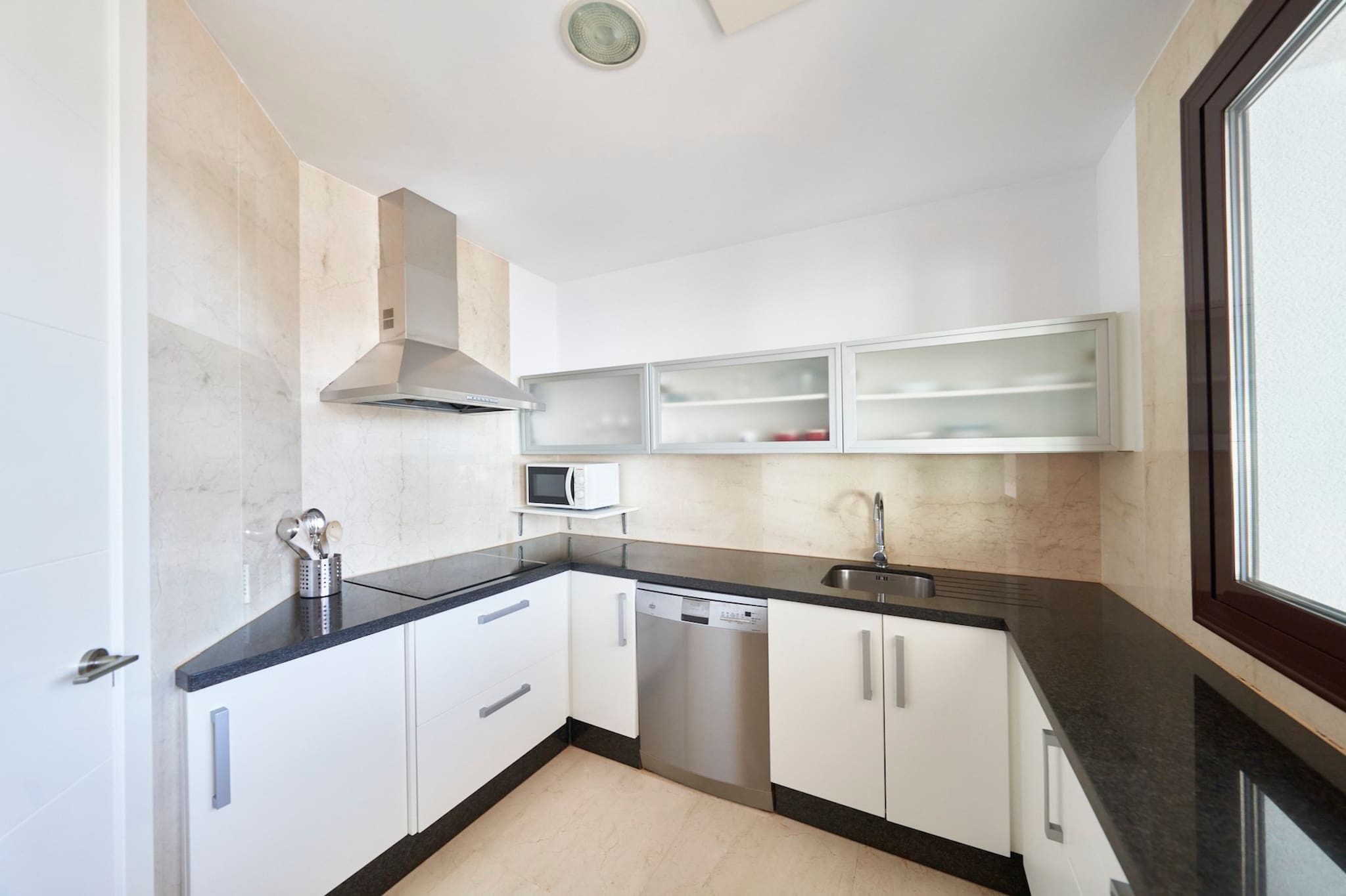 The apartment in San Jose has 2 bedrooms and has capacity for 4 people. The apartment is 120 m². The accommodation is equipped with the following items: garden, garden furniture, fenced garden, 30 m² terrace, washing machine, iron, internet (Wi-Fi), hair dryer, air conditioning throughout the house, communal swimming pool, open-air parking the same building, 1 TV. In the hotplate of glass ceramics independent kitchen, refrigerator, microwave, freezer, dishwasher, dishes/cutlery, kitchen utensils, coffee machine, toaster, kettle and juicer are provided.