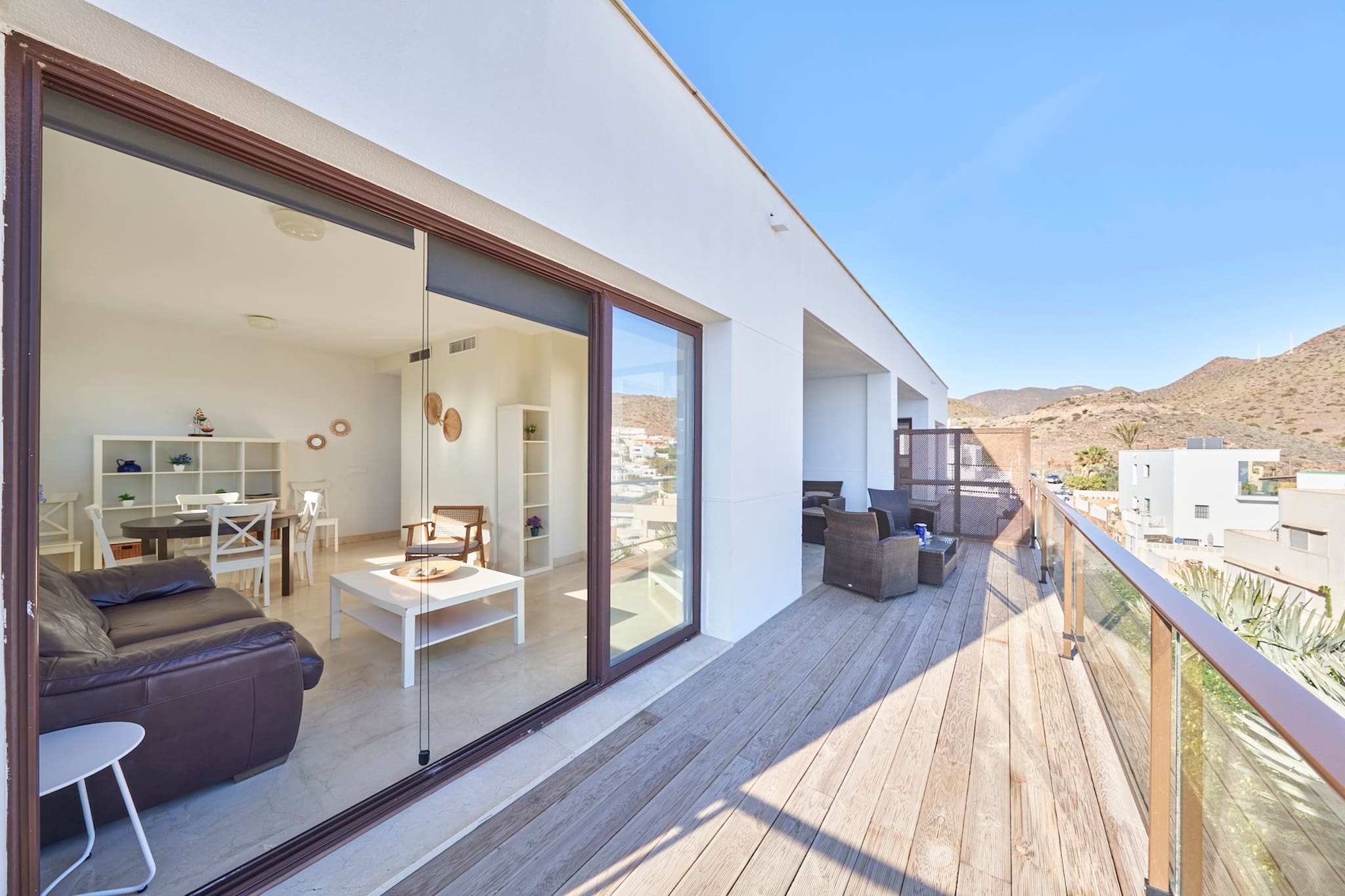 The apartment in San Jose has 3 bedrooms and has capacity for 6 people. The apartment is 140 m². The accommodation is equipped with the following items: garden, garden furniture, fenced garden, 30 m² terrace, washing machine, iron, internet (Wi-Fi), hair dryer, air conditioning throughout the house, communal swimming pool, open-air parking the same building, 1 TV. In the hotplate of glass ceramics independent kitchen, refrigerator, microwave, oven, freezer, dishwasher, dishes/cutlery, kitchen utensils, coffee machine, toaster, kettle and juicer are provided.