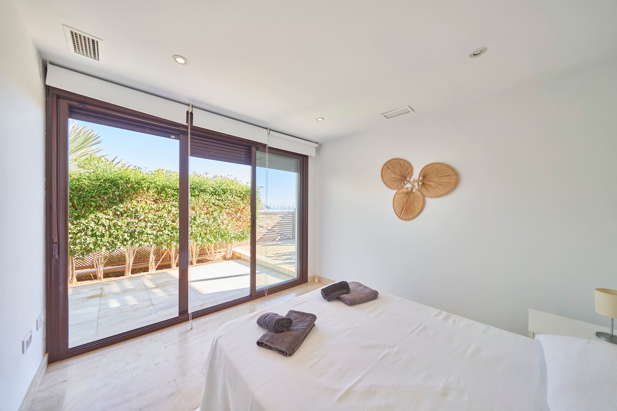 The apartment in San Jose has 3 bedrooms and has capacity for 6 people. The apartment is 140 m². The accommodation is equipped with the following items: garden, garden furniture, fenced garden, 30 m² terrace, washing machine, iron, internet (Wi-Fi), hair dryer, air conditioning throughout the house, communal swimming pool, open-air parking the same building, 1 TV.In the hotplate of glass ceramics independent kitchen, refrigerator, microwave, oven, freezer, dishwasher, dishes/cutlery, kitchen utensils, coffee machine, toaster, kettle and juicer are provided.