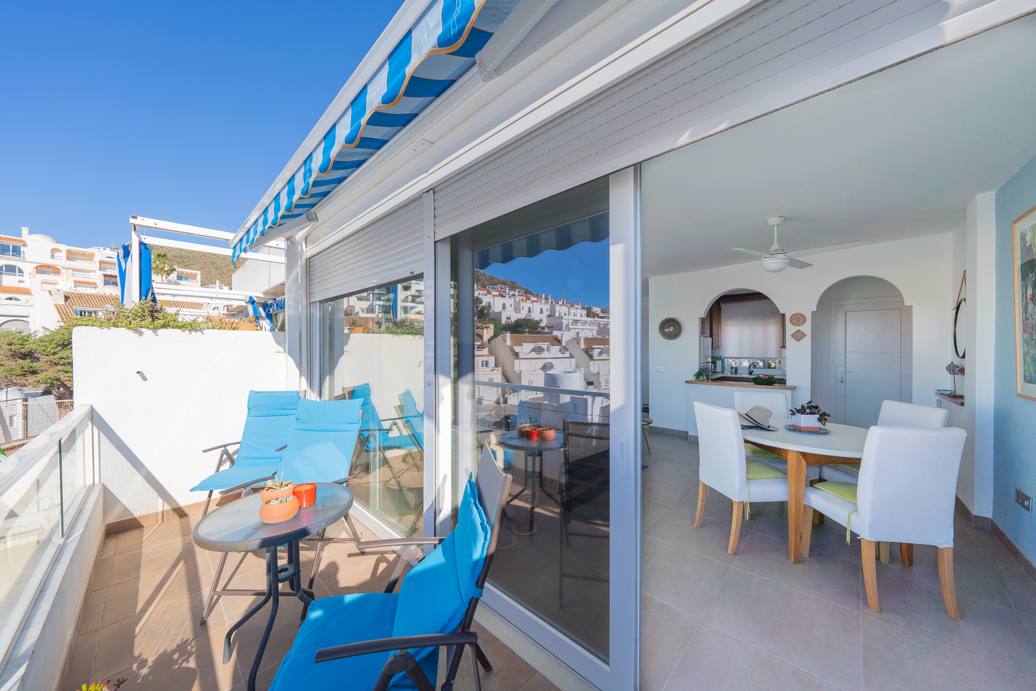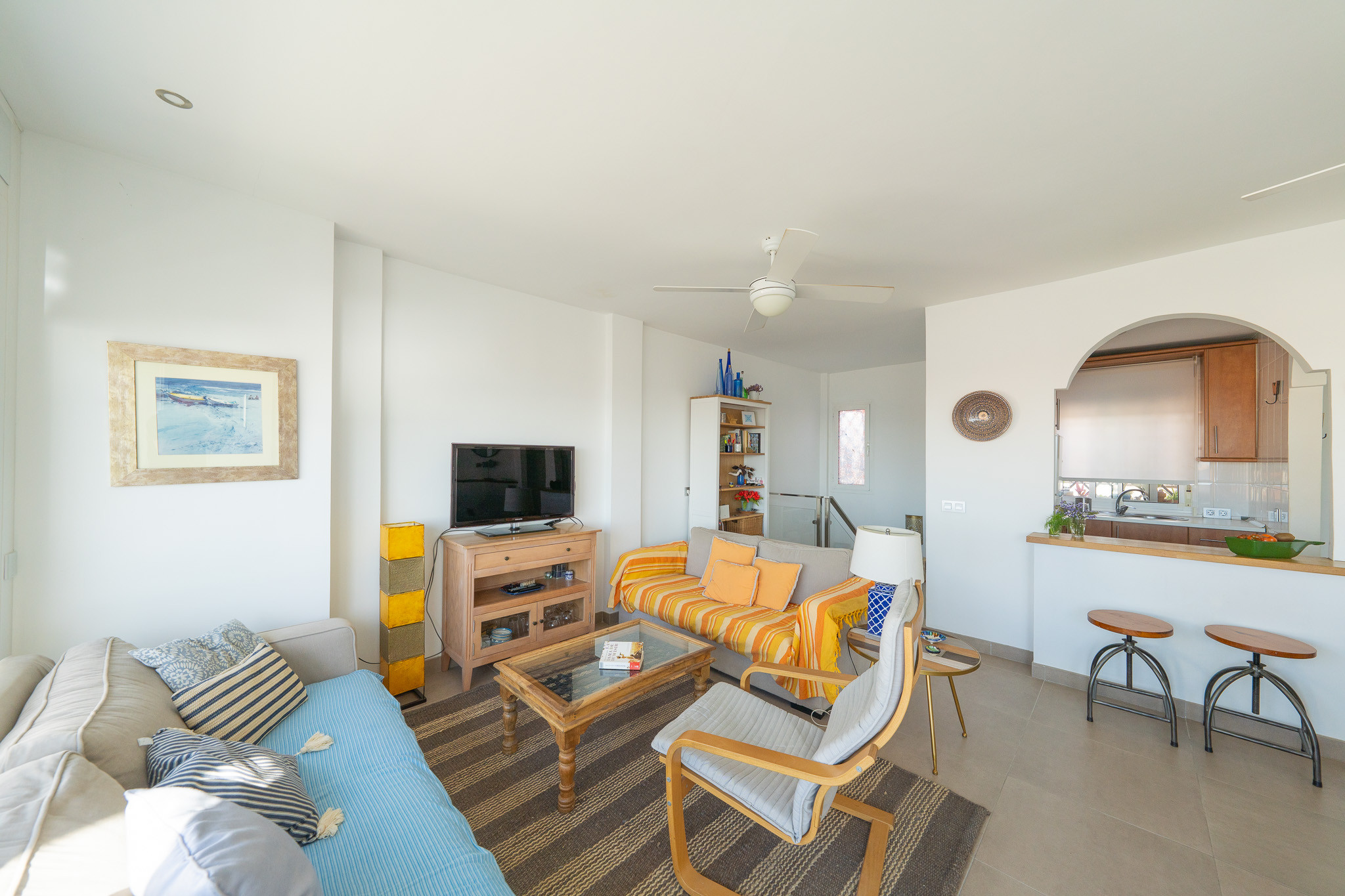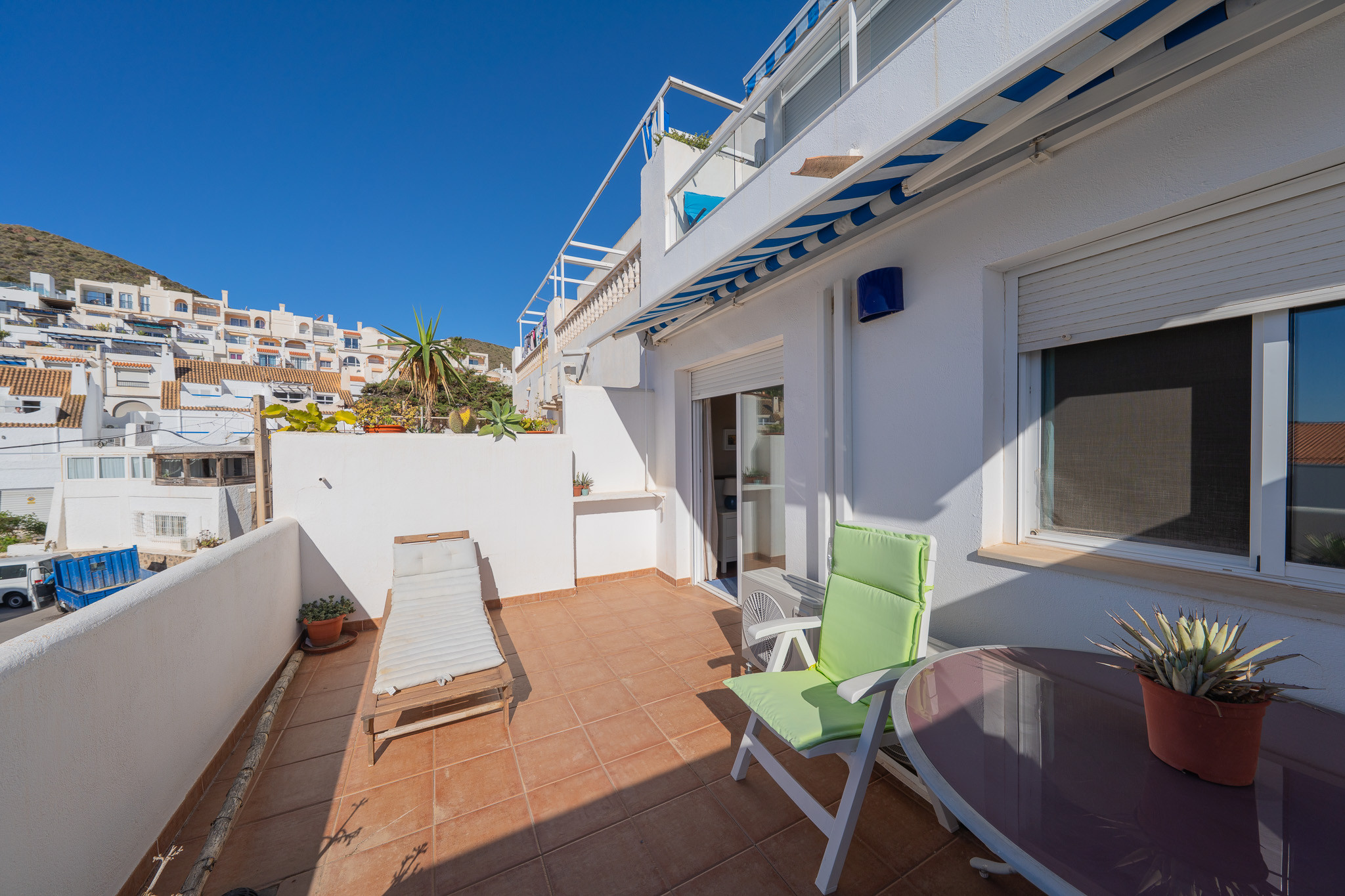 The house in Níjar has 2 bedrooms and has capacity for 4 people. The house is 100 m². The accommodation is equipped with the following items: washing machine, iron, internet (Wi-Fi), balcony, air-conditioned, 2 fans, mosquito nets throughout the accommodation, 1 TV.In the hotplate of glass ceramics open plan kitchen, refrigerator, oven, freezer, dishes/cutlery, kitchen utensils, coffee machine, toaster and juicer are provided.