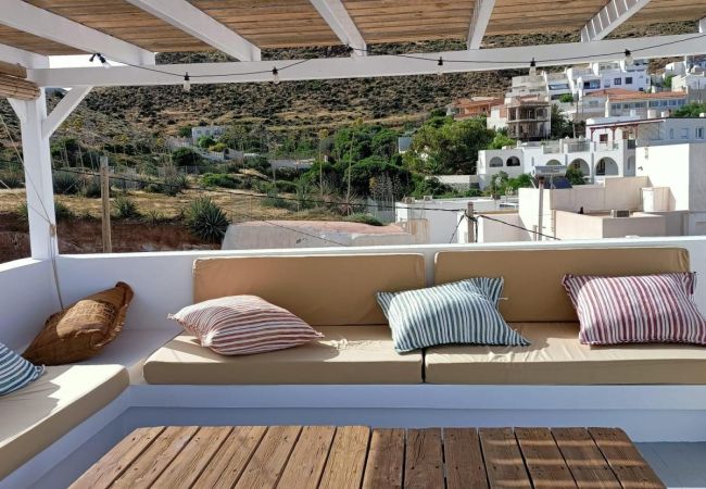 The house in San Jose has 2 bedrooms and has capacity for 4 people. The house is 70 m². The accommodation is equipped with the following items: garden furniture, 12 m² terrace, washing machine, iron, hair dryer, balcony, air-conditioned, 1 fan, 1 TV.the kitchen, refrigerator, microwave, oven, freezer, dishes/cutlery, kitchen utensils, coffee machine, toaster, kettle and juicer are provided.