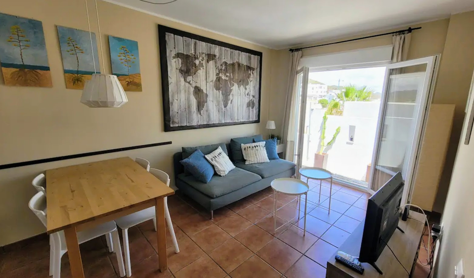 The house in San Jose has 2 bedrooms and has capacity for 4 people. The house is 80 m². The accommodation is equipped with the following items: garden, washing machine, iron, internet (Wi-Fi), hair dryer, air-conditioned, 1 TV. In the hotplate of glass ceramics open plan kitchen, refrigerator, microwave, freezer, dishes/cutlery, kitchen utensils, coffee machine, toaster and juicer are provided.