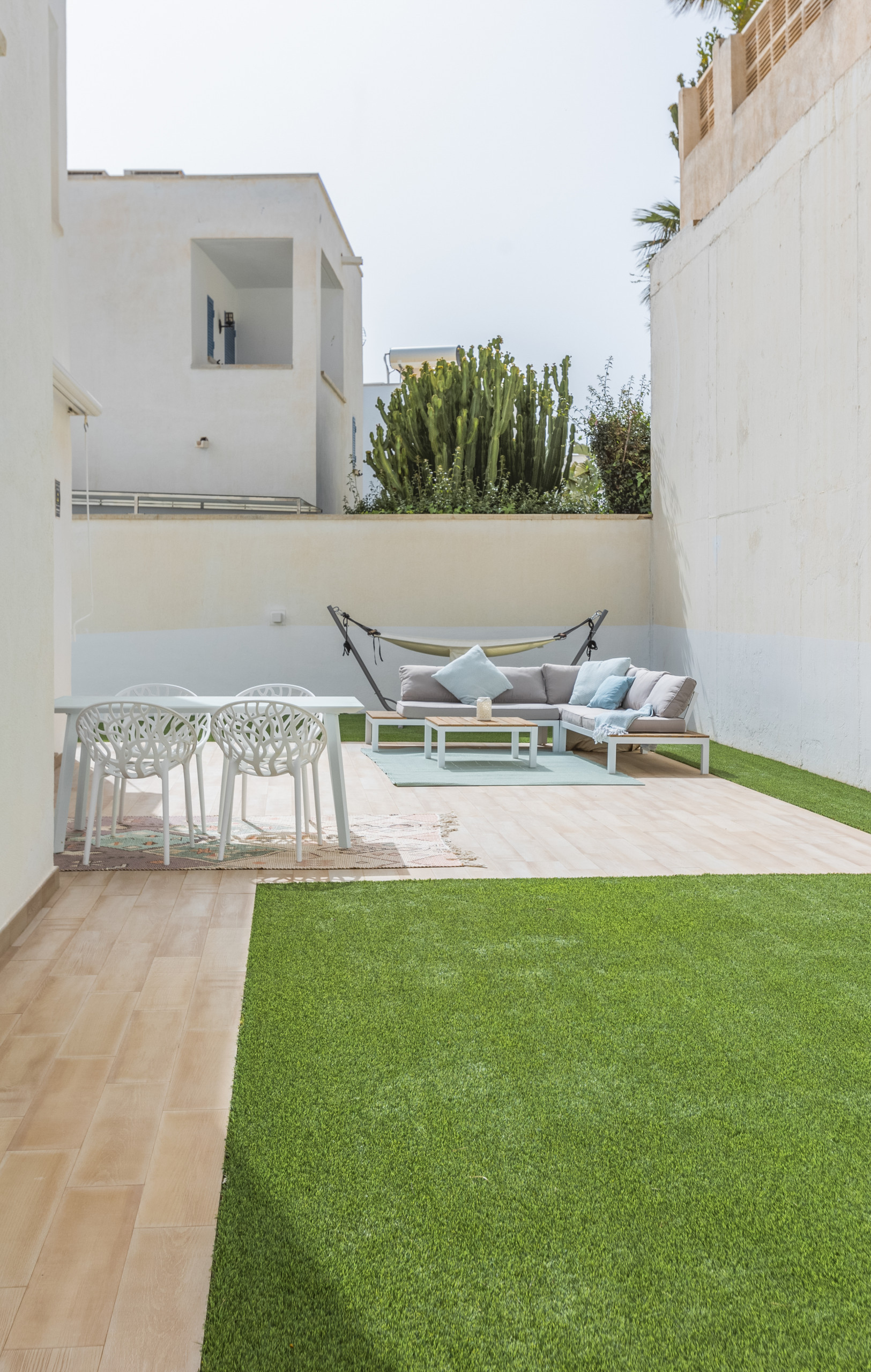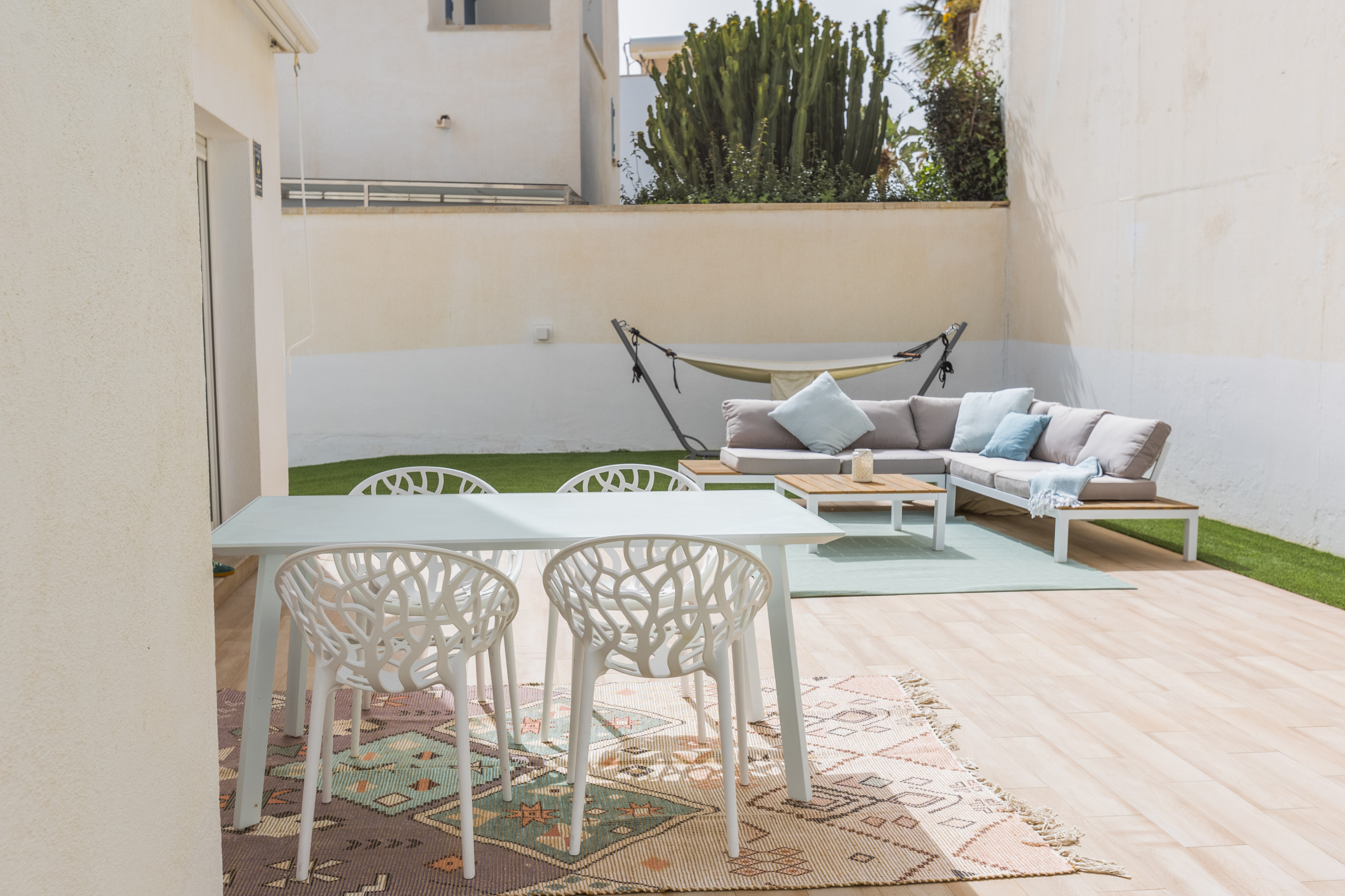 The house in San Jose has 3 bedrooms and has capacity for 6 people. The house is 150 m². The accommodation is equipped with the following items: garden, garden furniture, fenced garden, 60 m² terrace, washing machine, hair dryer, heat pump, air-conditioned, 1 TV.In the hotplate of glass ceramics independent kitchen, refrigerator, microwave, oven, freezer, dishwasher, dishes/cutlery, kitchen utensils, coffee machine, toaster and kettle are provided.