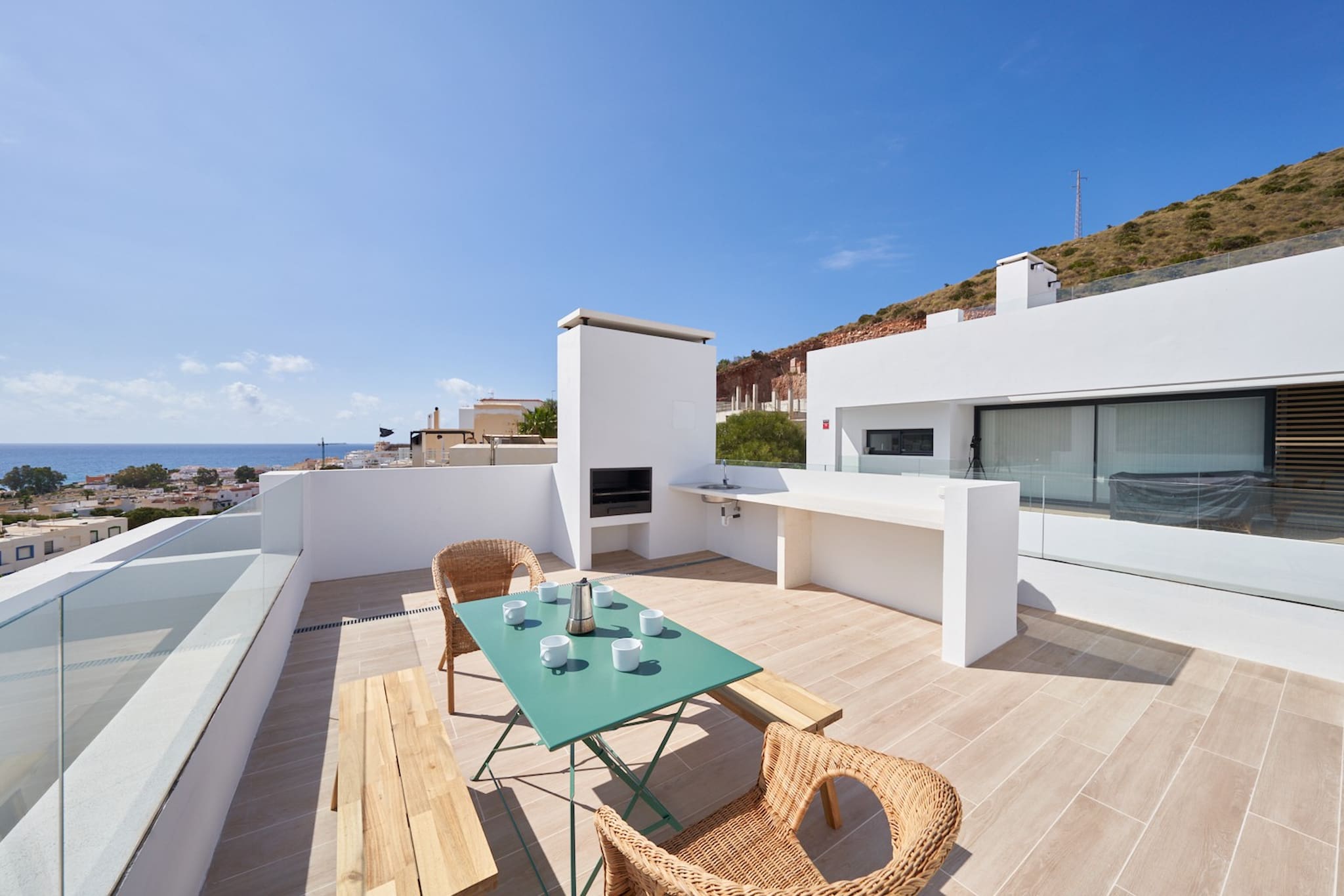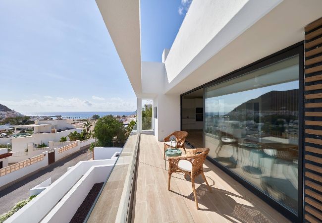 The terraced house in San Jose has 3 bedrooms and has capacity for 6 people. The terraced house is 100 m². The accommodation is equipped with the following items: garden, garden furniture, fenced garden, terrace, washing machine, barbecue, fireplace, iron, internet (Wi-Fi), hair dryer, heat pump, air conditioning throughout the house, communal swimming pool, garage the same building, 1 TV. In the hotplate of glass ceramics open plan kitchen, refrigerator, microwave, oven, freezer, dishwasher, dishes/cutlery, kitchen utensils, coffee machine, toaster, kettle and juicer are provided.