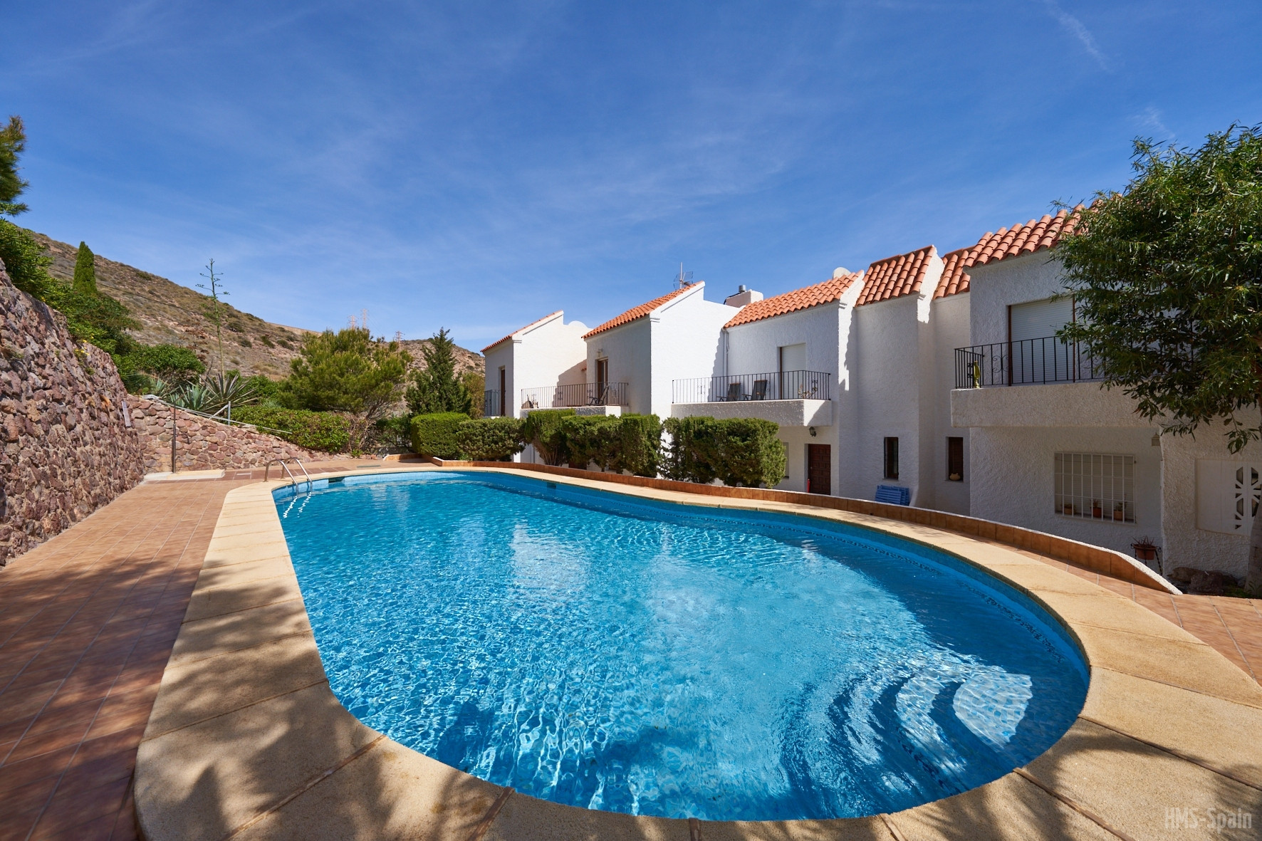 The terraced house in San Jose has 2 bedrooms and has capacity for 4 people. The terraced house is 80 m². The accommodation is equipped with the following items: garden, garden furniture, fenced garden, 15 m² terrace, washing machine, barbecue, fireplace, iron, internet (Wi-Fi), hair dryer, balcony, heat pump, air-conditioned, communal swimming pool, open-air parking the same building, 1 TV.In the gas open plan kitchen, refrigerator, microwave, oven, freezer, dishes/cutlery, kitchen utensils, coffee machine and toaster are provided.