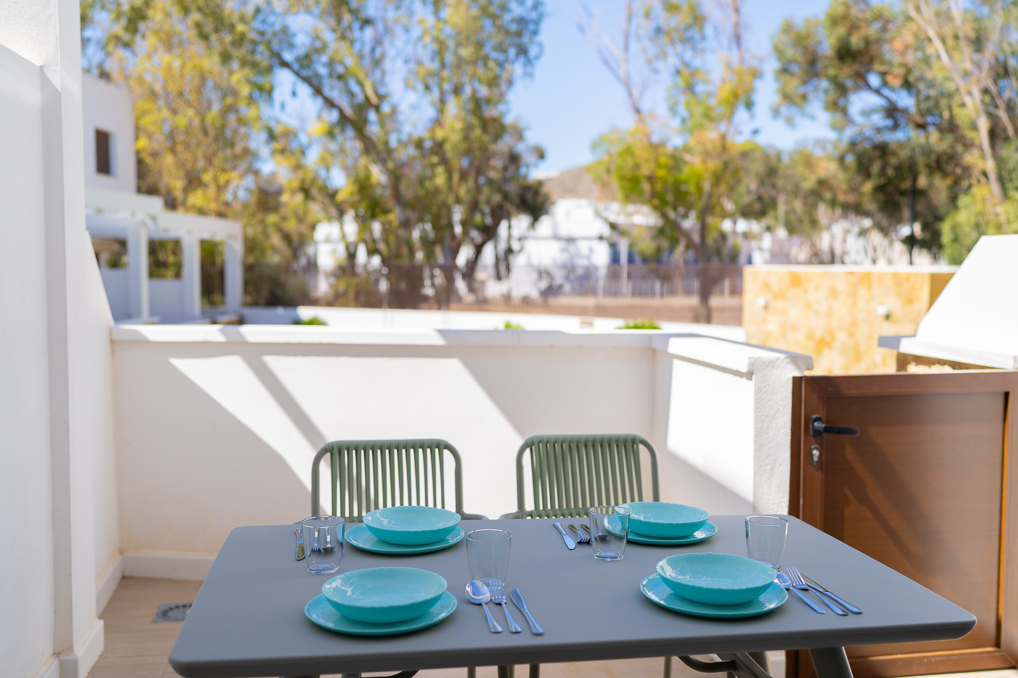 Die Doppelhaushälfte in San Jose verfügt über 2 Schlafzimmer und hat eine Kapazität für 4 Person(en). Unterkunft verfügt über 90 m². Die Unterkunft verfügt über einen Garten, Gartenmöbel, Terrasse 40 m², eine Waschmaschine, ein Bügeleisen/-brett, ein Internetanschluss (WLAN), ein Föhn, eine Wärmepumpe, eine Klimaanlage, einen Gemeinschaftspool, eine Garage auf dem Grundstück, 1 Fernseher.Die Offene Küche mit Ceranfeld ist ausgestattet in einen Kühlschrank, eine Mikrowelle, ein Backofen, Gefrierschrank, eine Spülmaschine, Geschirr/Besteck, Kochutensilien, eine Kaffeemaschine, einen Toaster, einen Wasserkocher und eine Saftpresse.