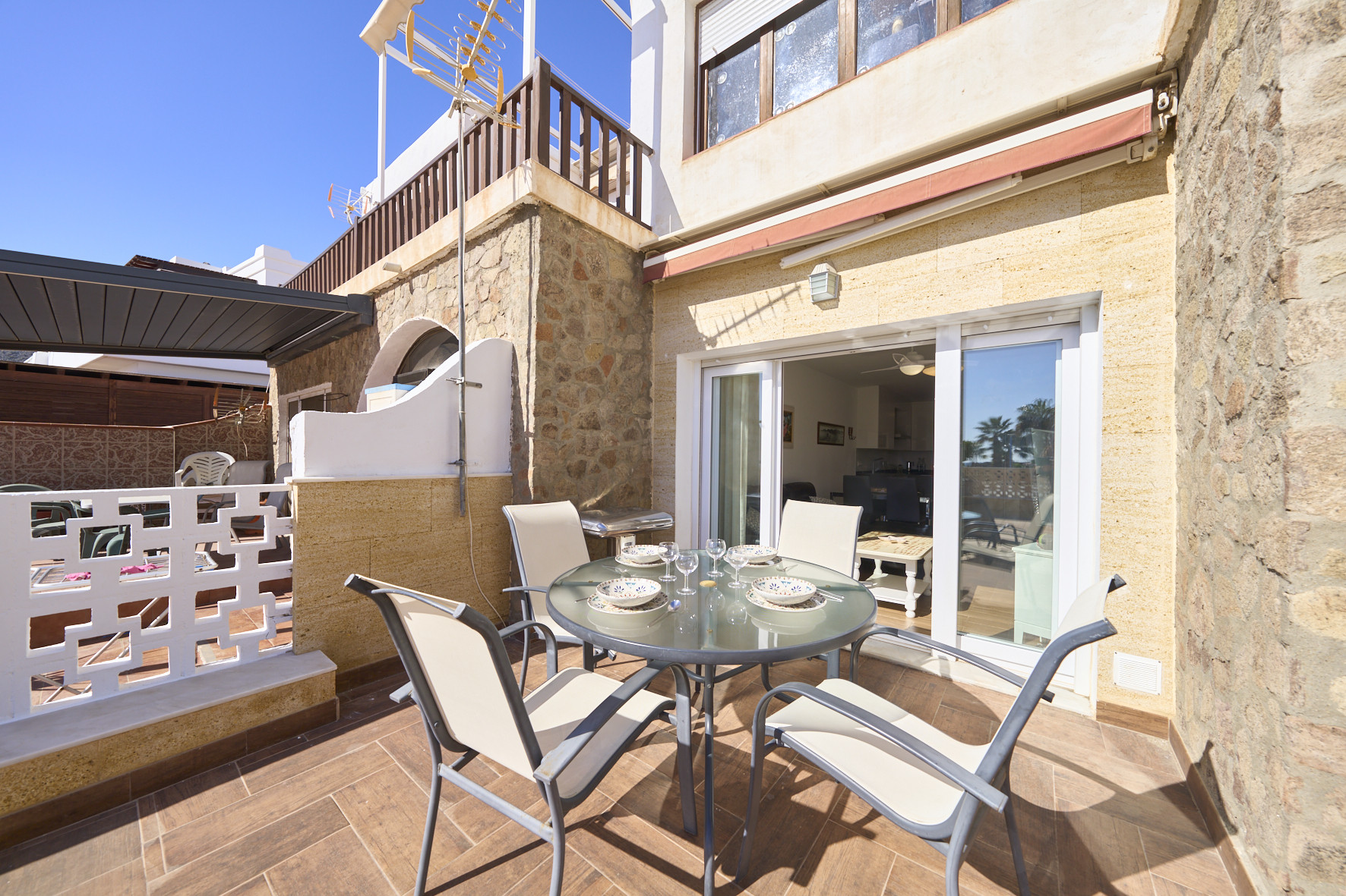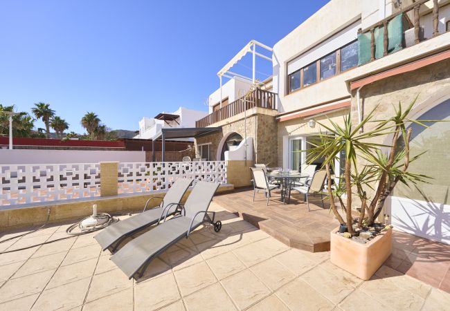 Das Ferienhaus in San Jose verfügt über 3 Schlafzimmer und hat eine Kapazität für 7 Person(en). Unterkunft verfügt über 85 m². Die Unterkunft verfügt über einen Garten, Gartenmöbel, ein umzäuntes Grundstück, Terrasse 12 m², eine Waschmaschine, einen Grillplatz, ein Bügeleisen/-brett, ein Föhn, eine Wärmepumpe, eine Klimaanlage, einen Parkplatz im Freien, Moskitonetz(e) im Schlafzimmer, ein Fernsehgeräte.Die Separate Küche mit Induktions-Kochfeld ist ausgestattet in einen Kühlschrank, eine Mikrowelle, ein Backofen, Gefrierschrank, eine Spülmaschine, Geschirr/Besteck, Kochutensilien, eine Kaffeemaschine, einen Toaster, einen Wasserkocher und eine Saftpresse.