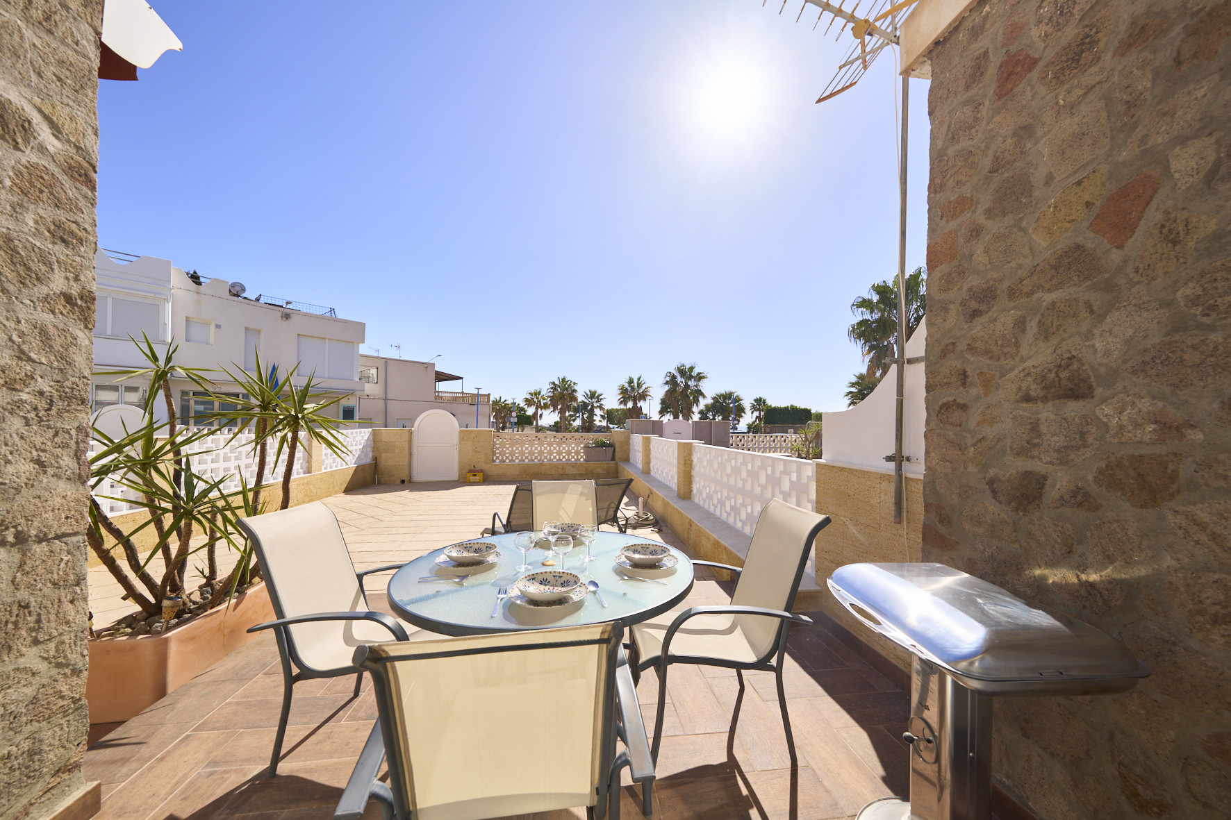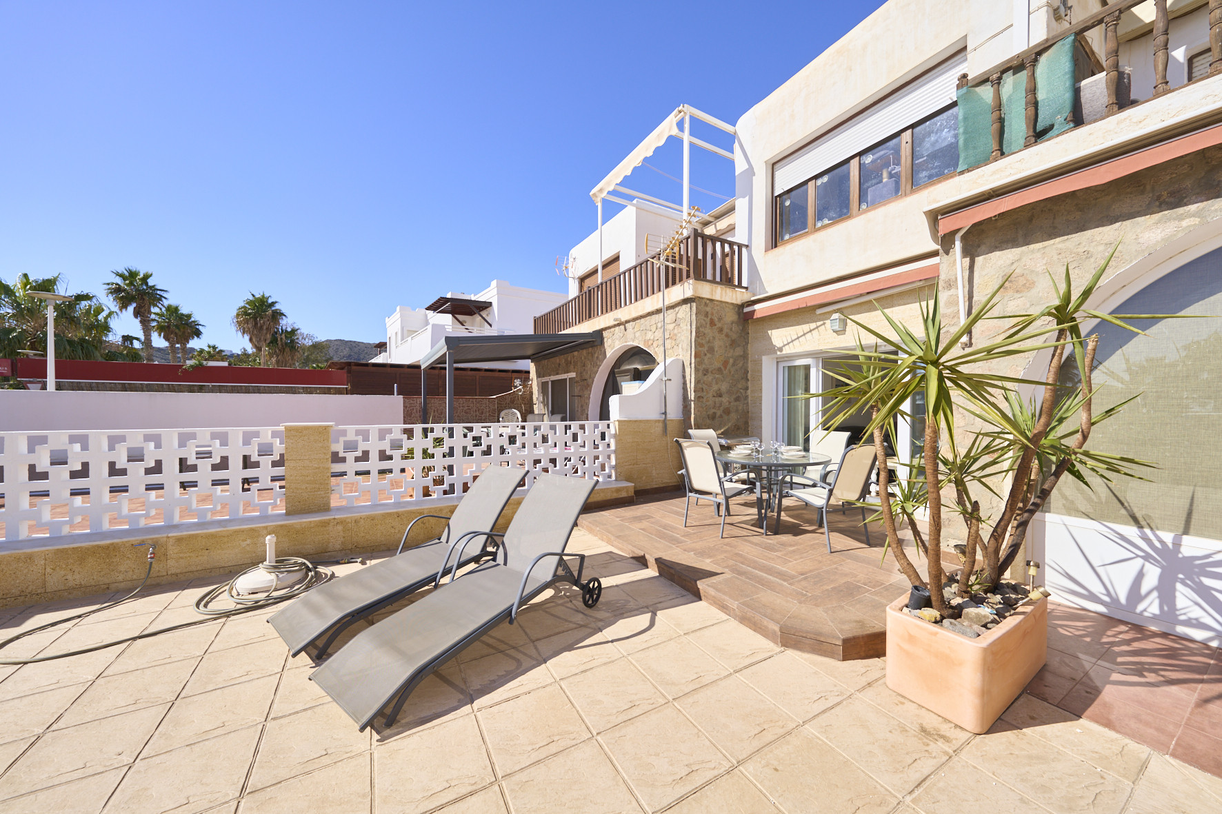 Das Ferienhaus in San Jose verfügt über 3 Schlafzimmer und hat eine Kapazität für 7 Person(en). Unterkunft verfügt über 85 m². Die Unterkunft verfügt über einen Garten, Gartenmöbel, ein umzäuntes Grundstück, Terrasse 12 m², eine Waschmaschine, einen Grillplatz, ein Bügeleisen/-brett, ein Föhn, eine Wärmepumpe, eine Klimaanlage, einen Parkplatz im Freien, Moskitonetz(e) im Schlafzimmer, ein Fernsehgeräte. Die Separate Küche mit Induktions-Kochfeld ist ausgestattet in einen Kühlschrank, eine Mikrowelle, ein Backofen, Gefrierschrank, eine Spülmaschine, Geschirr/Besteck, Kochutensilien, eine Kaffeemaschine, einen Toaster, einen Wasserkocher und eine Saftpresse.