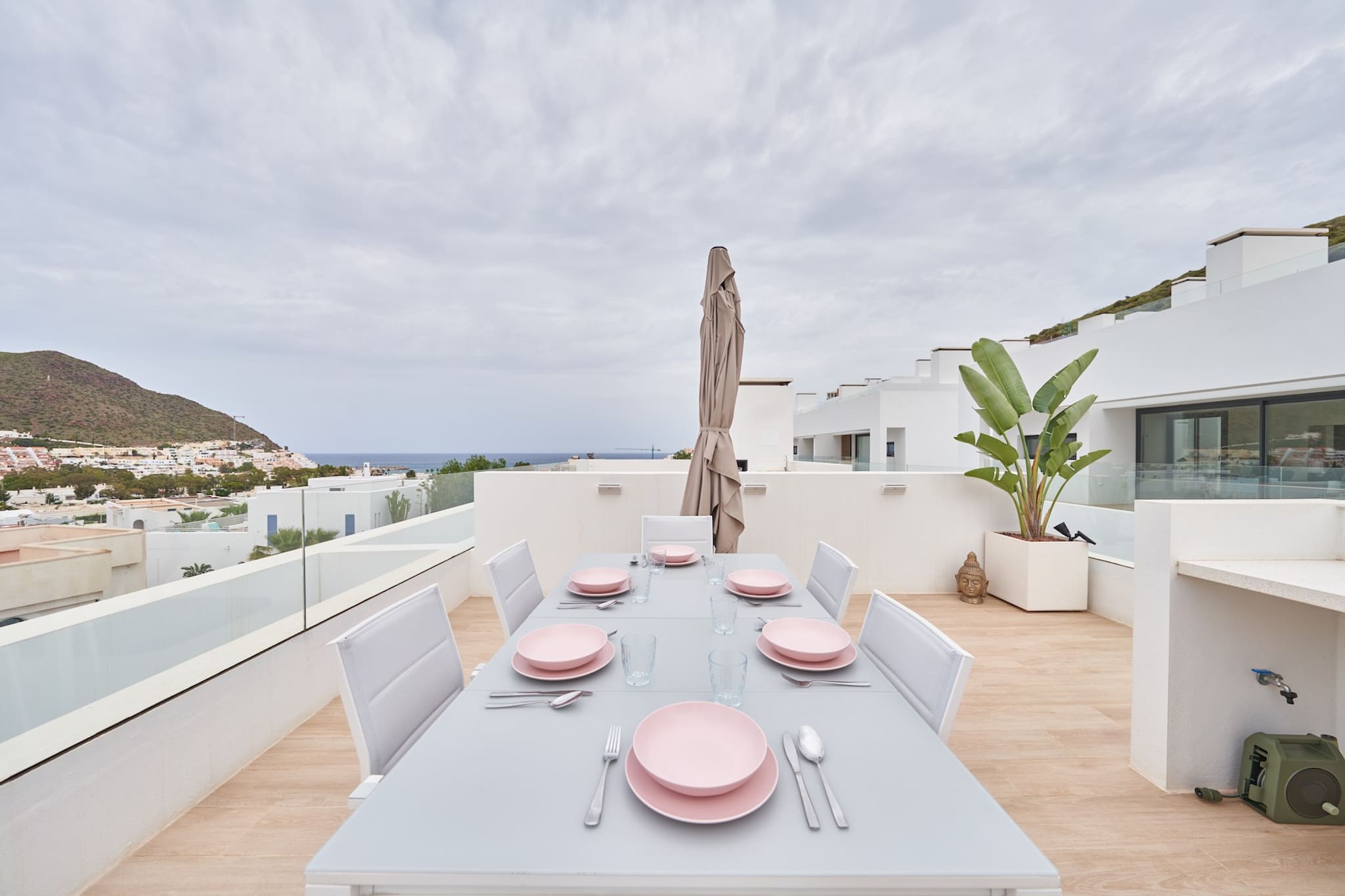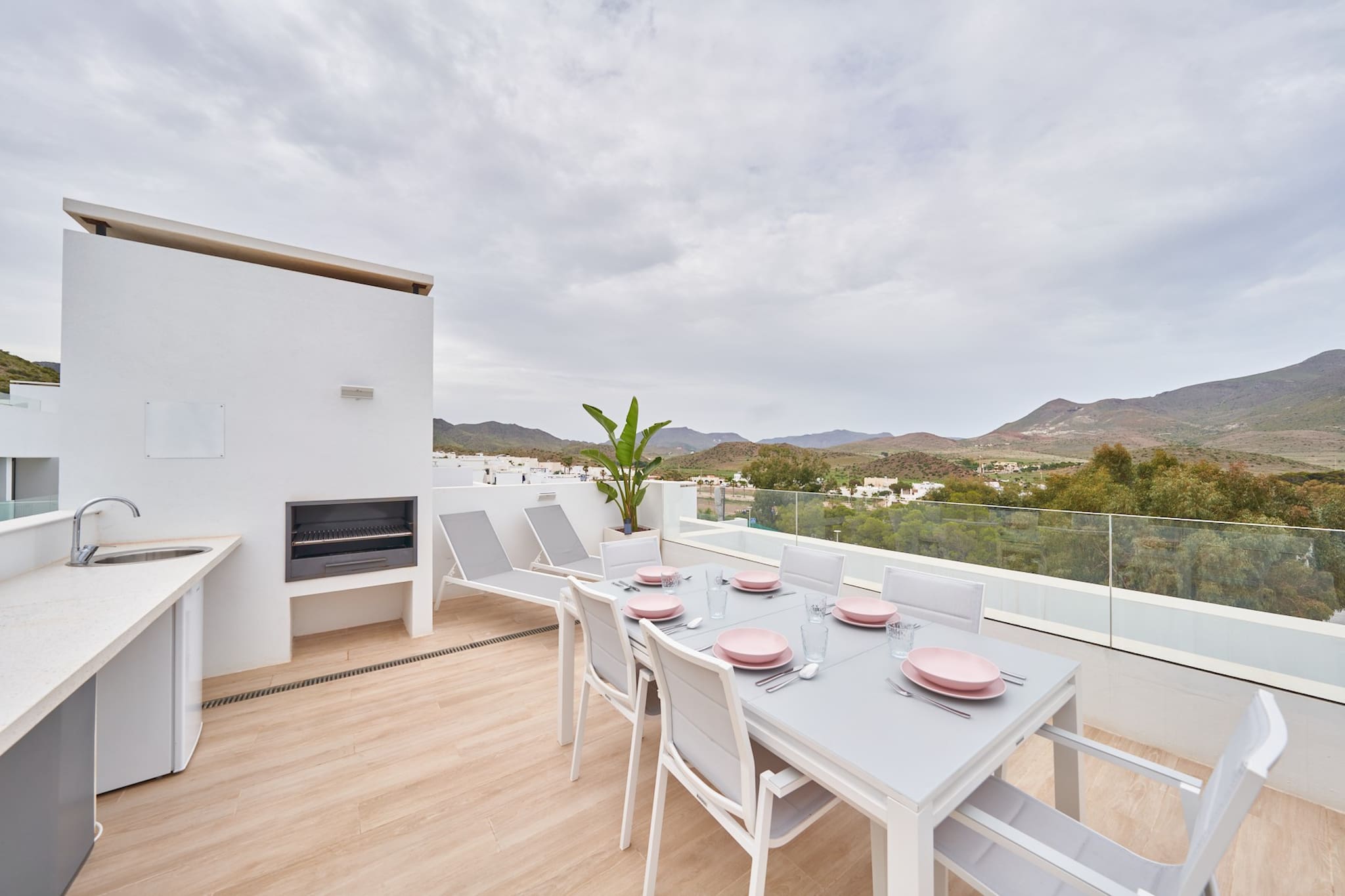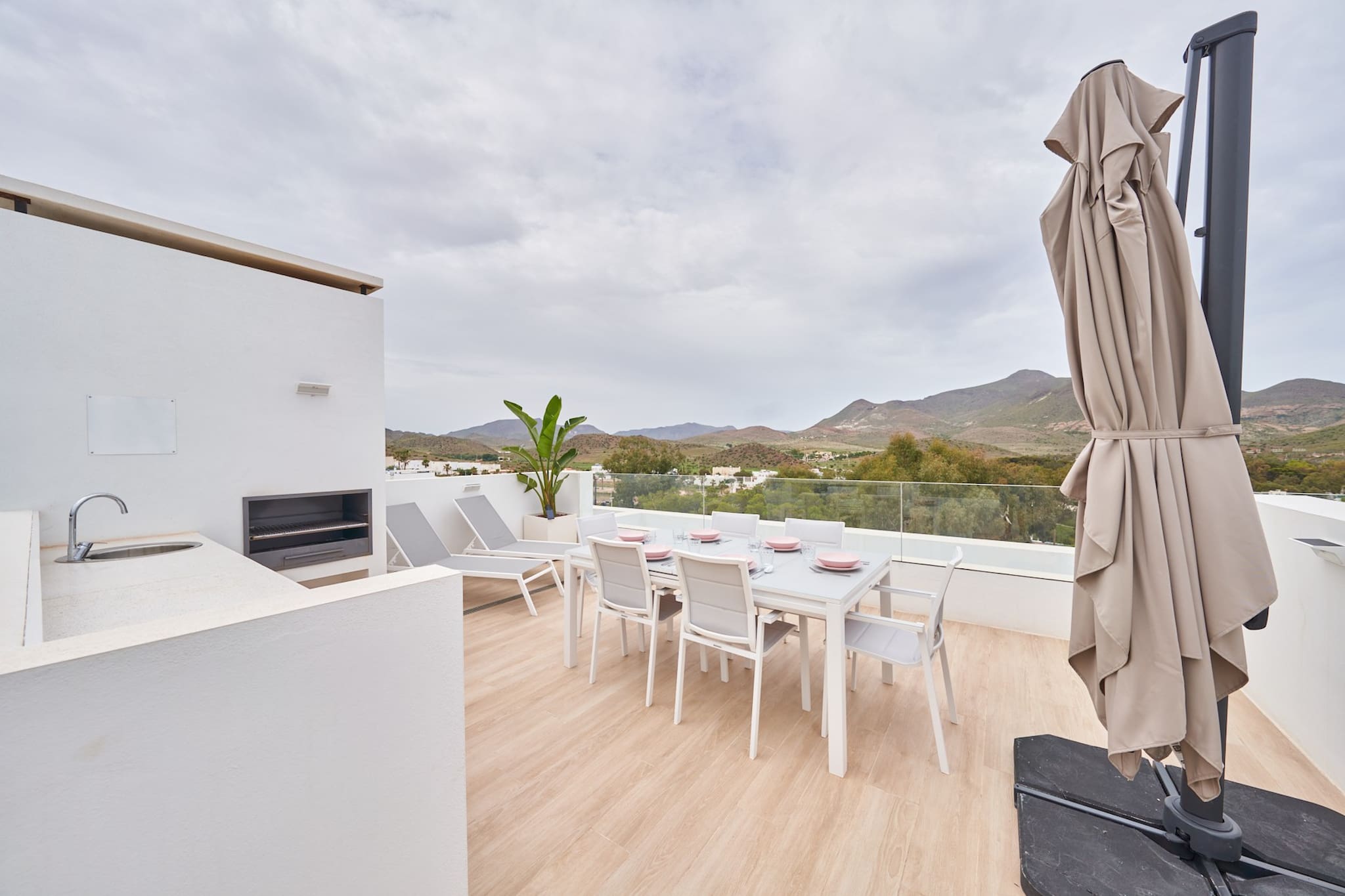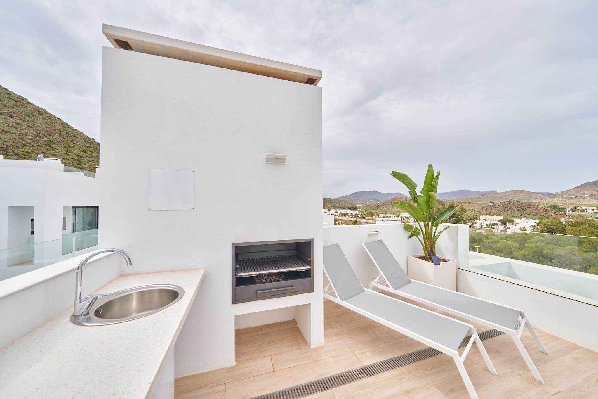Das Ferienhaus in San Jose verfügt über 3 Schlafzimmer und hat eine Kapazität für 6 Person(en). Unterkunft verfügt über 120 m². Die Unterkunft verfügt über einen Garten, Gartenmöbel, ein umzäuntes Grundstück, Terrasse 20 m², eine Waschmaschine, einen Trockner, einen Grillplatz, einen Kamin, ein Bügeleisen/-brett, ein Internetanschluss (WLAN), ein Föhn, eine Wärmepumpe, eine Klimaanlage in der ganzen Unterkunft, einen Gemeinschaftspool, eine Garage auf dem Grundstück, 1 Fernseher. Die Offene Küche mit Ceranfeld ist ausgestattet in einen Kühlschrank, eine Mikrowelle, ein Backofen, Gefrierschrank, eine Spülmaschine, Geschirr/Besteck, Kochutensilien, eine Kaffeemaschine, einen Toaster, einen Wasserkocher und eine Saftpresse.