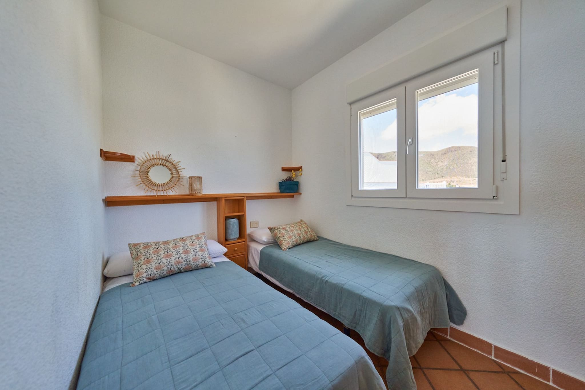 Die Ferienwohnung in Níjar verfügt über 2 Schlafzimmer und hat eine Kapazität für 5 Person(en). Unterkunft verfügt über 80 m². Die Unterkunft verfügt über ein Bügeleisen/-brett, ein Internetanschluss (WLAN), ein Föhn, eine Wärmepumpe, eine Klimaanlage nur im Wohnzimmer, 1 Fernseher.Die Offene Küche mit Ceranfeld ist ausgestattet in einen Kühlschrank, eine Mikrowelle, Gefrierschrank, Geschirr/Besteck, eine Kaffeemaschine und einen Toaster.