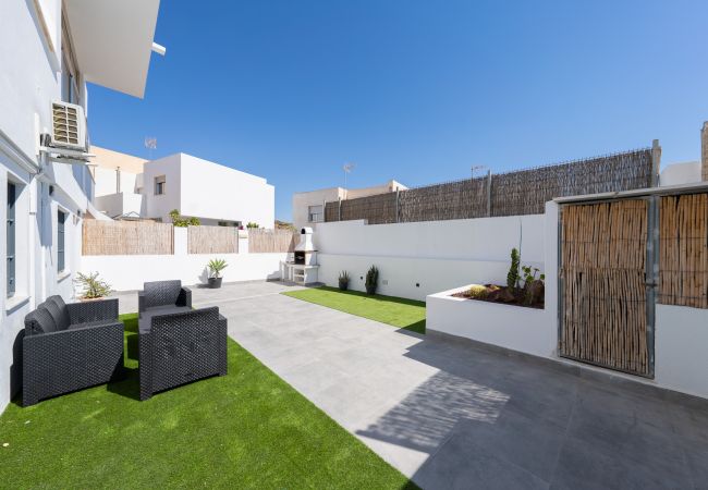 Die Ferienwohnung in San Jose verfügt über 2 Schlafzimmer und hat eine Kapazität für 4 Person(en). Unterkunft verfügt über 50 m². Die Unterkunft verfügt über einen Garten, Gartenmöbel, ein umzäuntes Grundstück, Terrasse 40 m², eine Waschmaschine, einen Grillplatz, ein Bügeleisen/-brett, ein Internetanschluss (WLAN), ein Föhn, eine Wärmepumpe, eine Klimaanlage, 1 Fernseher.Die Offene Küche mit Ceranfeld ist ausgestattet in einen Kühlschrank, eine Mikrowelle, ein Backofen, Gefrierschrank, Geschirr/Besteck, Kochutensilien, eine Kaffeemaschine, einen Toaster und einen Wasserkocher.