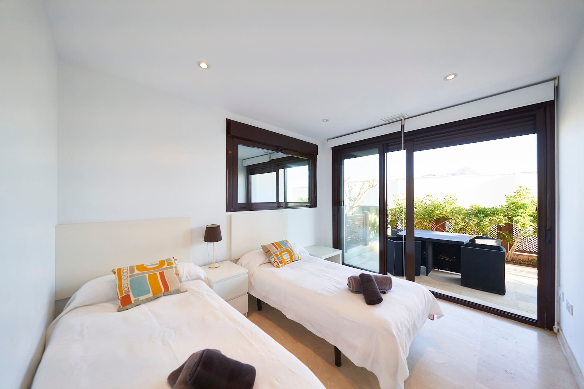 Die Ferienwohnung in San Jose verfügt über 2 Schlafzimmer und hat eine Kapazität für 4 Person(en). Unterkunft verfügt über 120 m². Die Unterkunft verfügt über einen Garten, Gartenmöbel, ein umzäuntes Grundstück, Terrasse 30 m², eine Waschmaschine, ein Bügeleisen/-brett, ein Internetanschluss (WLAN), ein Föhn, eine Klimaanlage in der ganzen Unterkunft, einen Gemeinschaftspool, einen Parkplatz im Freien auf dem Grundstück, 1 Fernseher.Die Separate Küche mit Ceranfeld ist ausgestattet in einen Kühlschrank, eine Mikrowelle, Gefrierschrank, eine Spülmaschine, Geschirr/Besteck, Kochutensilien, eine Kaffeemaschine, einen Toaster, einen Wasserkocher und eine Saftpresse.